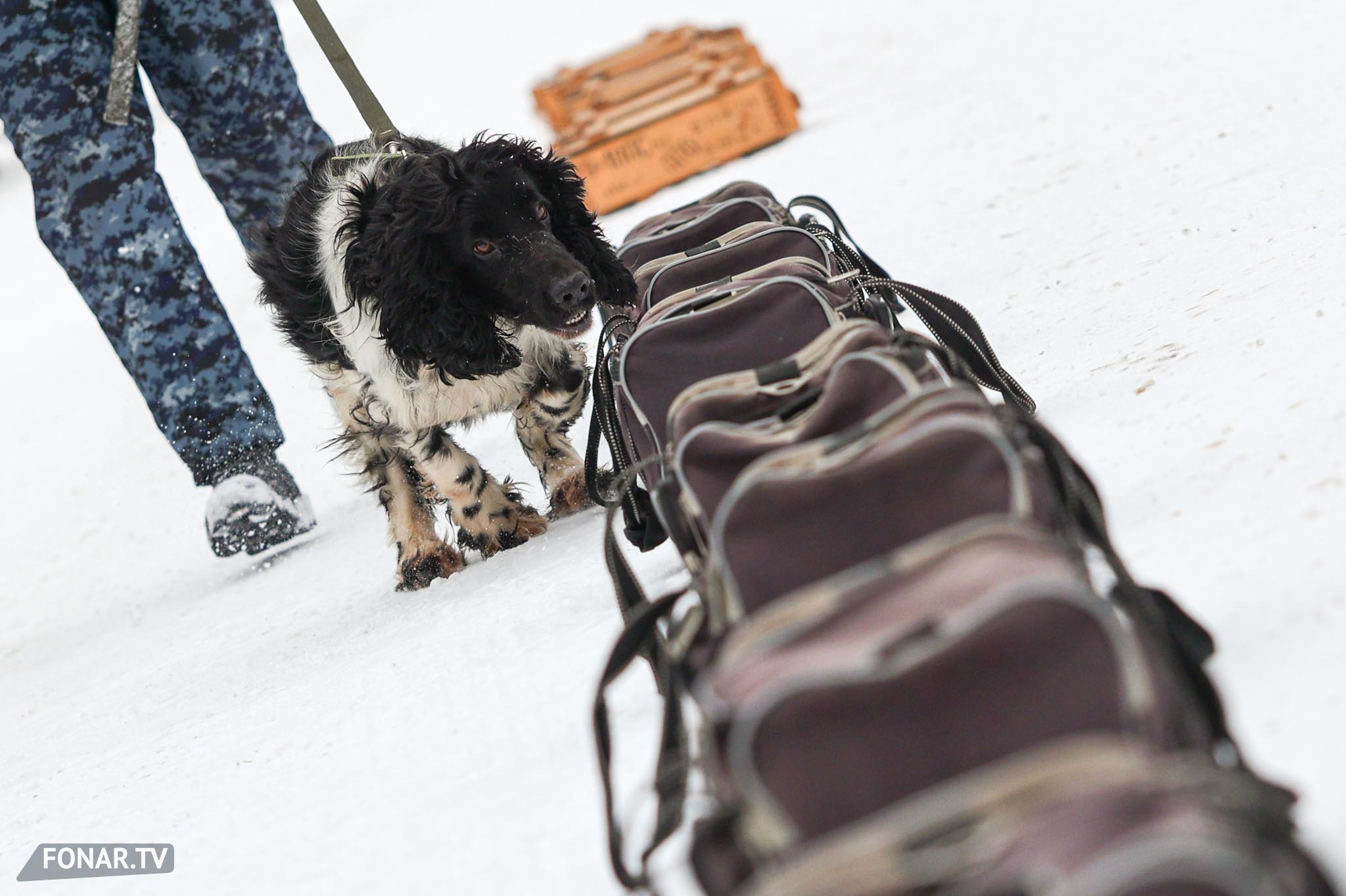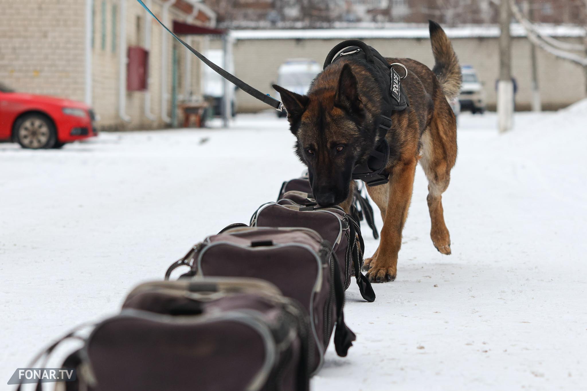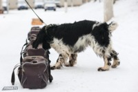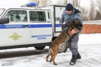 Похожая схема — с поиском «наркотика» в автомобиле. Ищейка обнюхала машину и обнаружила пакетик с имитацией запрещённого вещества. Кинолог бросил ей мячик в качестве поощрения — собака радостно побежала за ним.