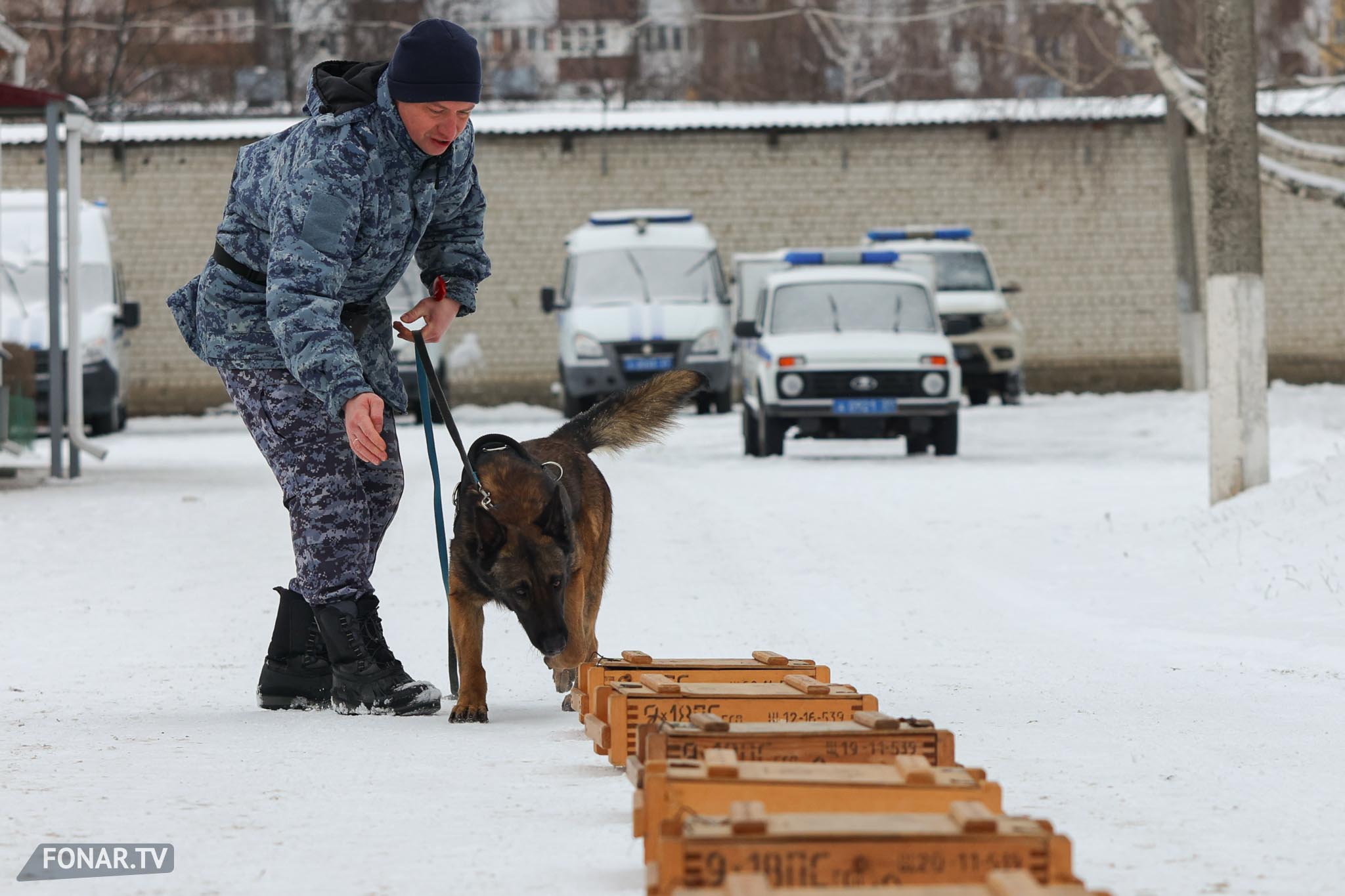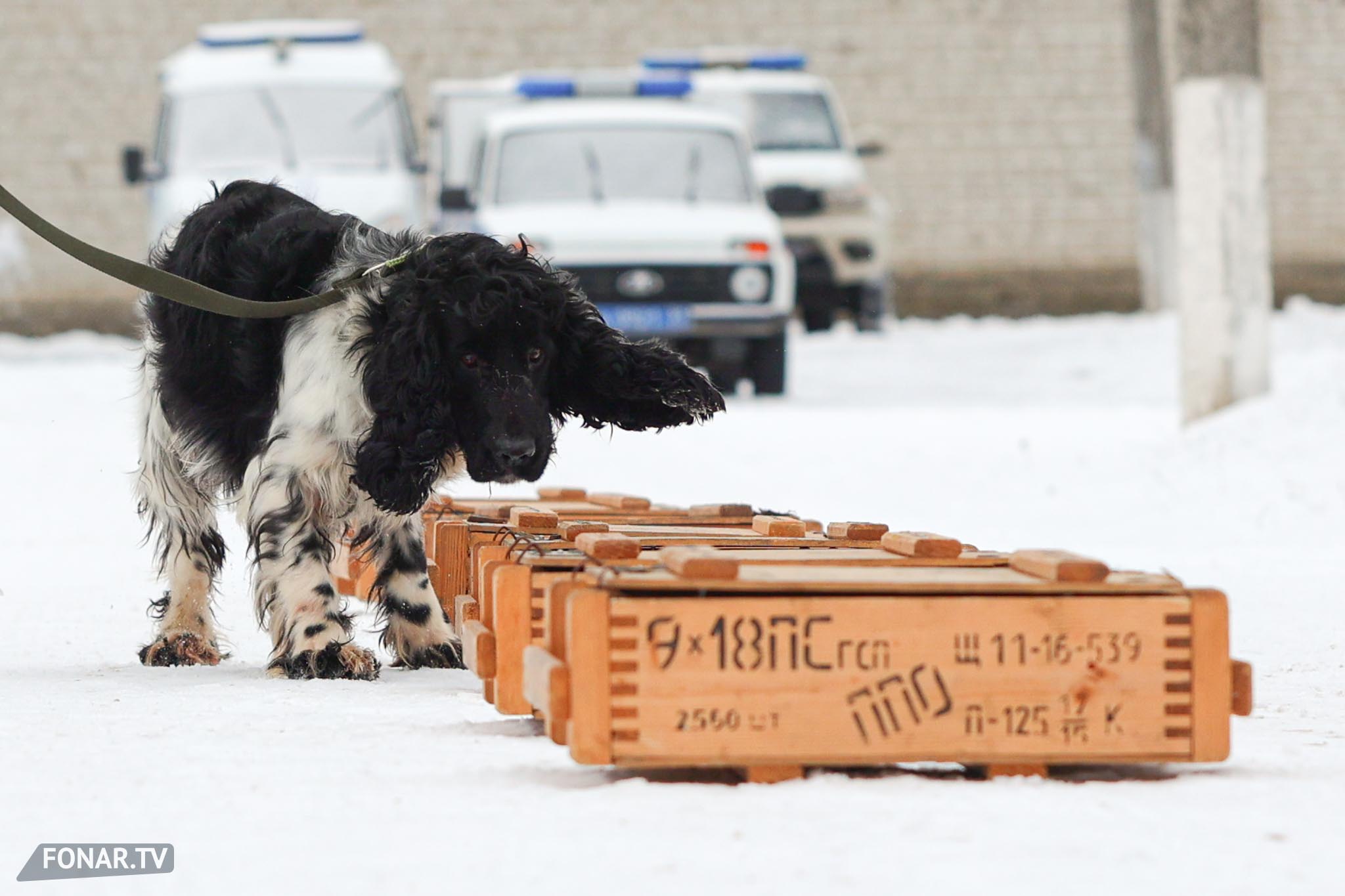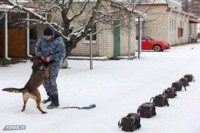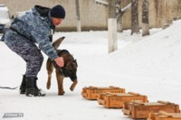 Уже во время службы собаки продолжают регулярные тренировки: отрабатывать навыки приходится не реже двух раз в неделю. Нам продемонстрировали часть такой тренировки: собаке нужно найти «взрывчатку» в одном из стоящих в ряд ящиков. Ищейка быстро обнюхала несколько ящиков, и, почуяв «запрещёнку», радостно бросилась к кинологу в ожидании похвалы. В итоге собака получила лакомство и продолжила ластиться.