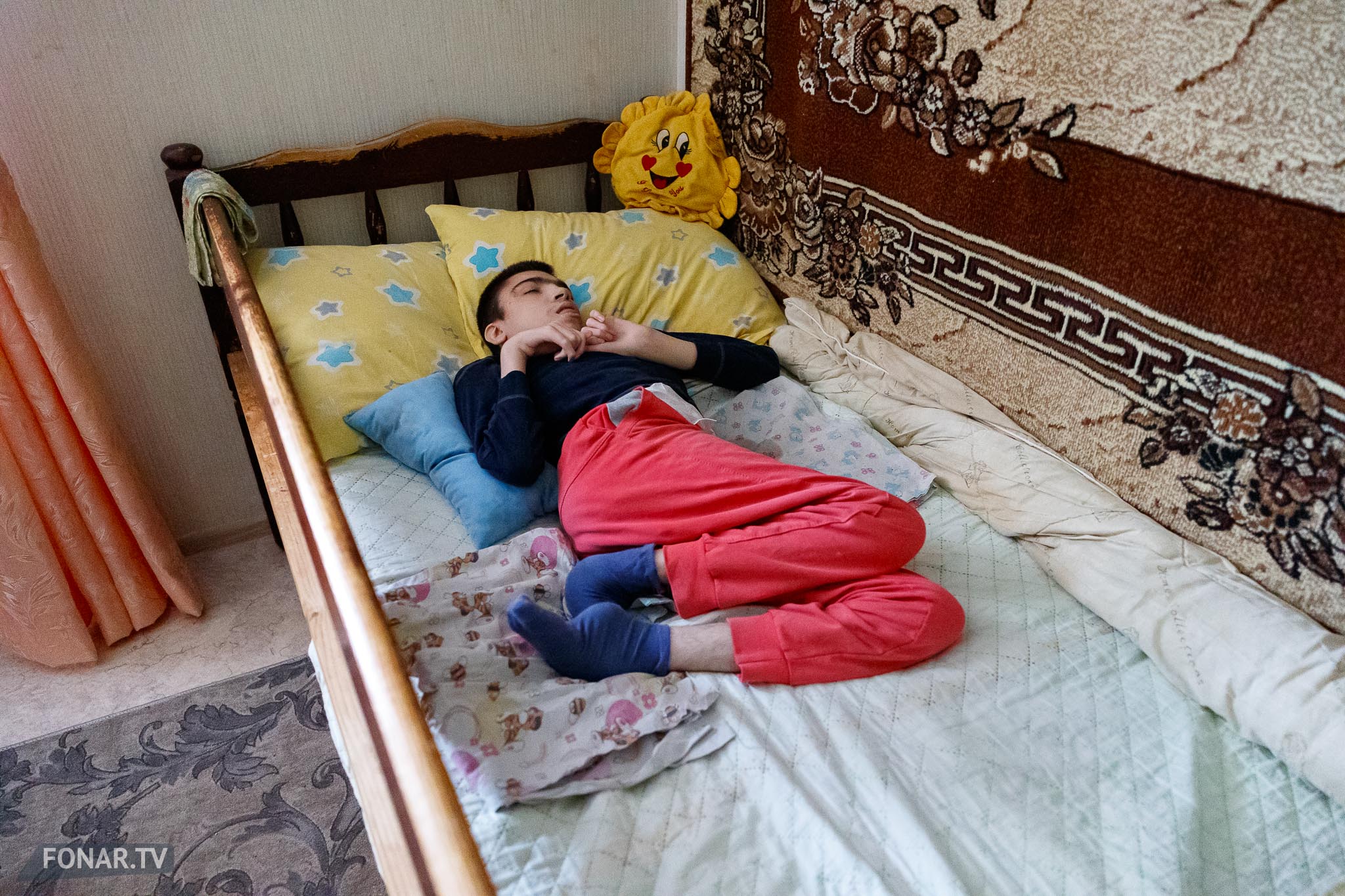 У старшего сына Натальи от первого брака ДЦП и эпилепсия, ему 18 лет, он не может самостоятельно передвигаться и обслуживать себя. Комнату с ним делит сестра-шестиклассница, и, как признаётся Наталья, девочка от этого очень страдает.