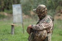 Далее — снова стрельба. На этот раз — «приведение оружия к нормальному бою». Бойцы под руководством инструктора стреляли по мишеням из положения лёжа. Это нужно, чтобы совместить среднюю точку попадания с точкой прицеливания. Ещё одна тренировка с имитацией боевых условий — на точке тактико-специальной подготовки. Здесь новобранцы тренировались заходить в окоп и действовать при сбросе гранаты.