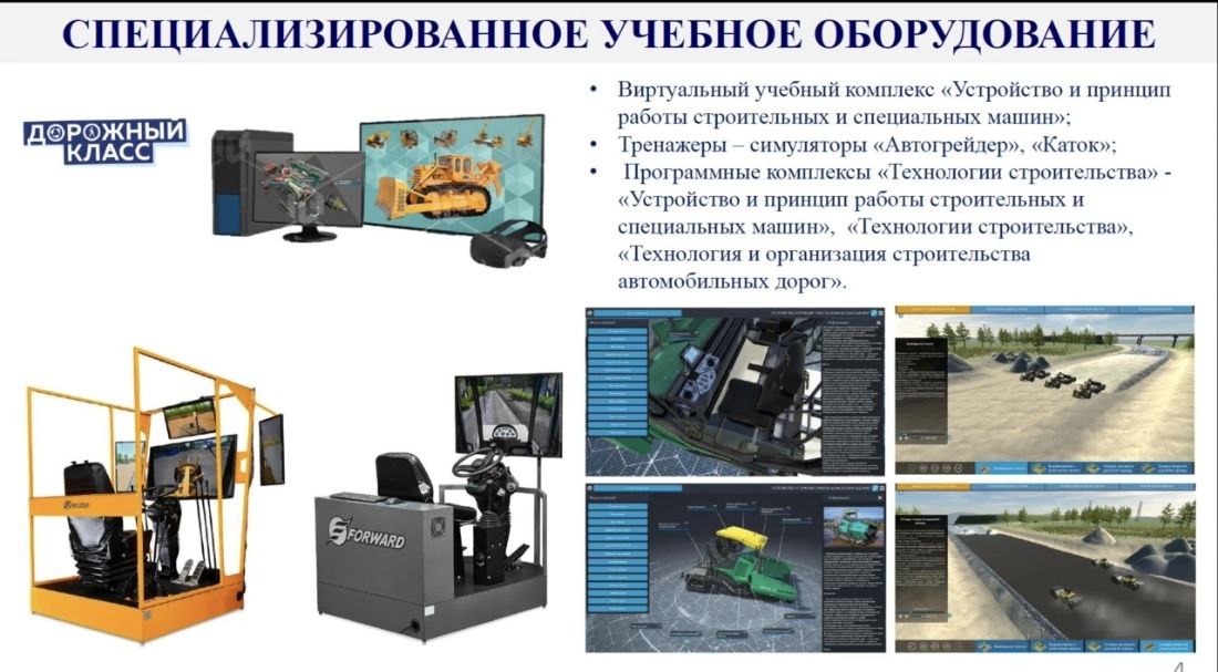 По проекту учебные заведения оснастят современными тренажёрами-симуляторами, такими как «Автогрейдер» и «Каток», а также виртуальными учебными комплексами, которые позволят учащимся глубже изучить устройство и принципы работы специальной дорожной техники. Как поделился заместитель министра автомобильных дорог и транспорта Андрей Рогов, преподаватели и наставники пройдут дополнительное обучение и переподготовку, чтобы повысить квалификацию и качество образовательного процесса.