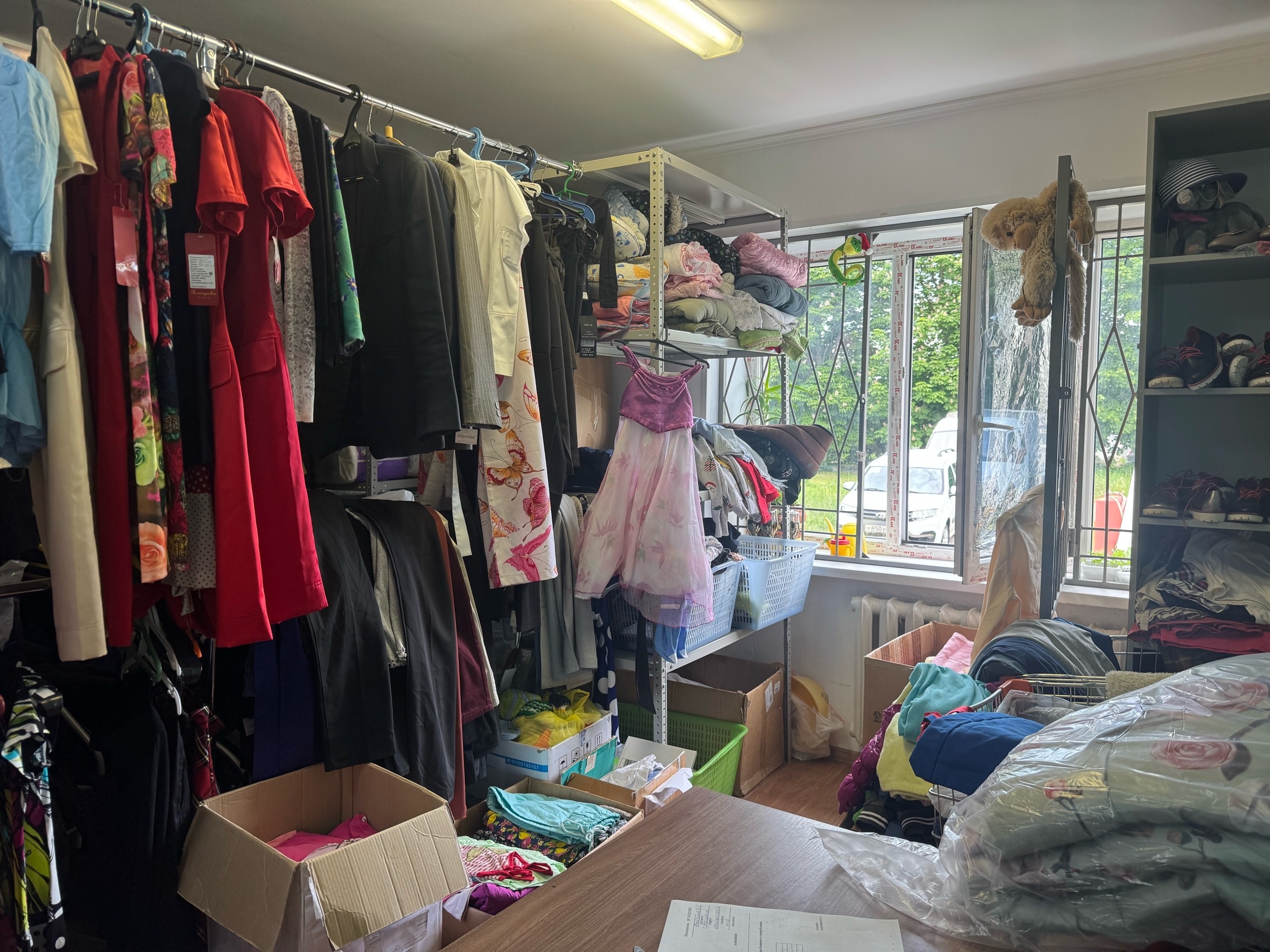 Из-за небольшого помещения принимают только сезонные вещи. Особенно остро не хватает одежды больших размеров.