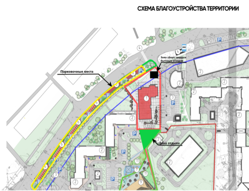 Для подтверждения он показал схему, на которой обозначена будущая контейнерная площадка. Она вынесена к проезжей части за периметр двора. К слову, паркинг для будущих жильцов также располагается вдоль дороги по улице Архитектора Бутовой. В «БошеСтройИнвест» пояснили, что хотят при строительстве дома воплотить ещё одну современную концепцию — двор без машин.
