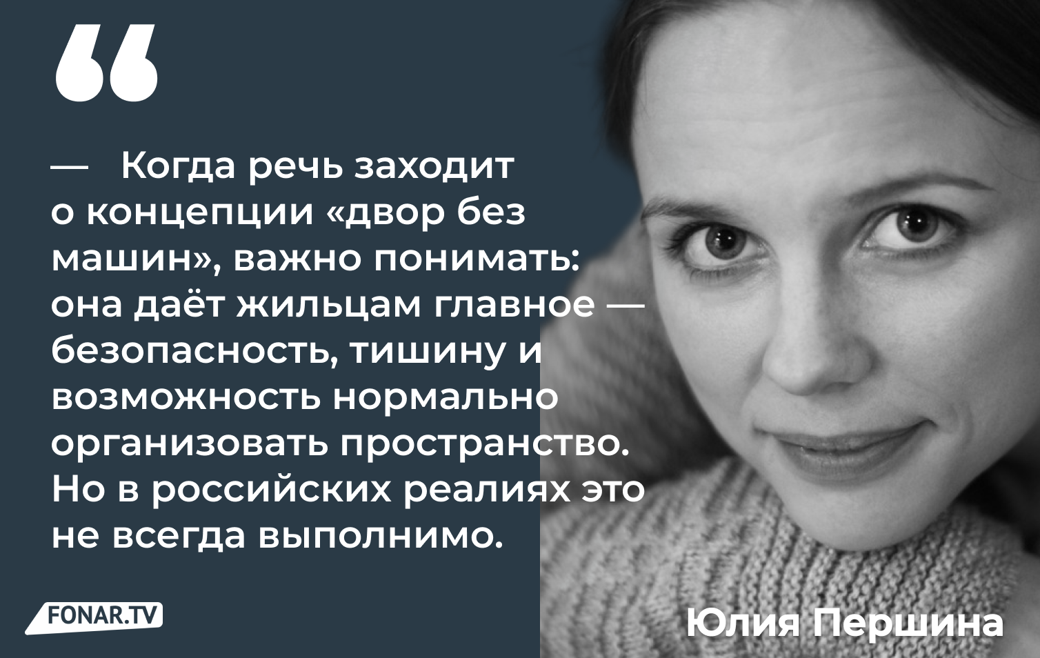Когда речь заходит о концепции «двор без машин», важно понимать: она даёт жильцам главное — безопасность, тишину и возможность нормально организовать пространство. Но в российских реалиях это не всегда выполнимо. Пятно застройки часто ограничено соседними домами, мешают инженерные сети. Да и люди не готовы отказываться от привычки парковаться под окнами. Пока полностью решить проблему стихийных парковок не получается — машин становится больше, а законодательно выделяемой территории не хватает.