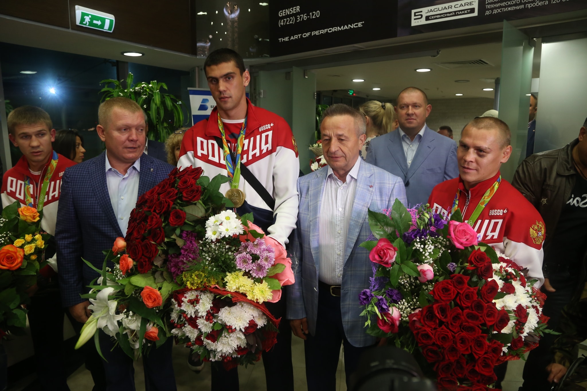 Евгения Тищенко и других боксёров встречают в аэропорту Белгорода после Олимпиады-2016, фото Владимира Корнева