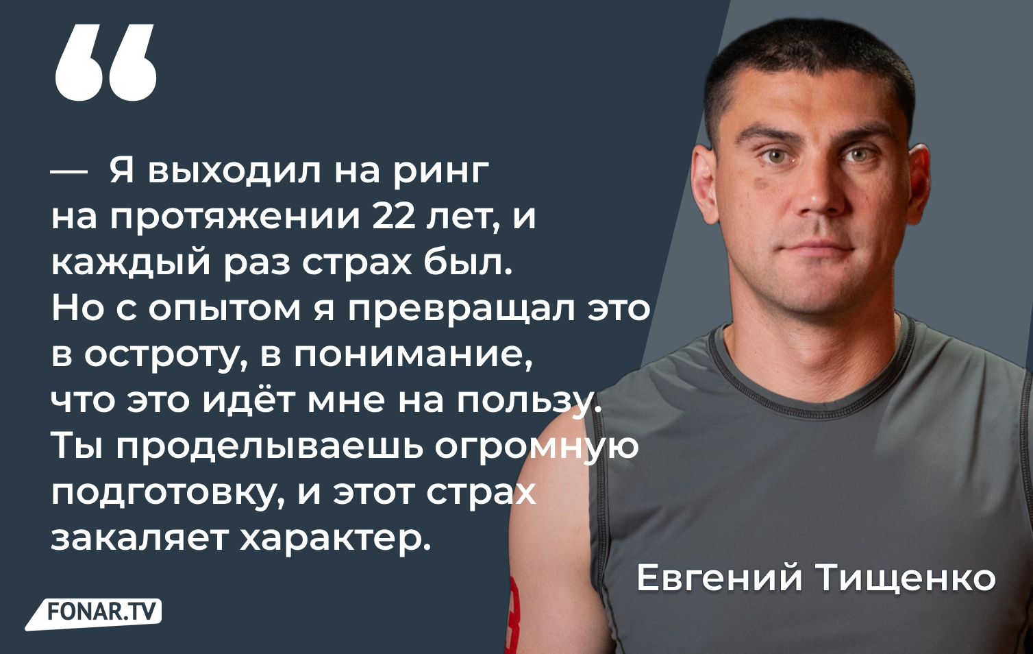 — Страх есть, мандраж тоже. Я выходил на ринг на протяжении 22 лет, и каждый раз он был. Но с опытом я превращал это в остроту, в понимание, что это идёт мне на пользу. Ты проделываешь огромную подготовку, и этот страх закаляет характер. В единоборствах, где ты один на один с соперником, всё зависит от тебя, ты должен держать концентрацию.