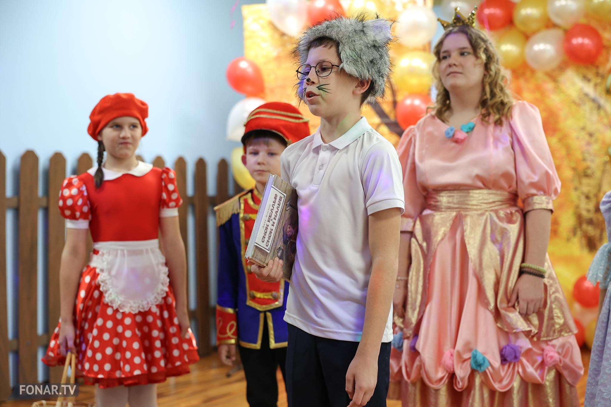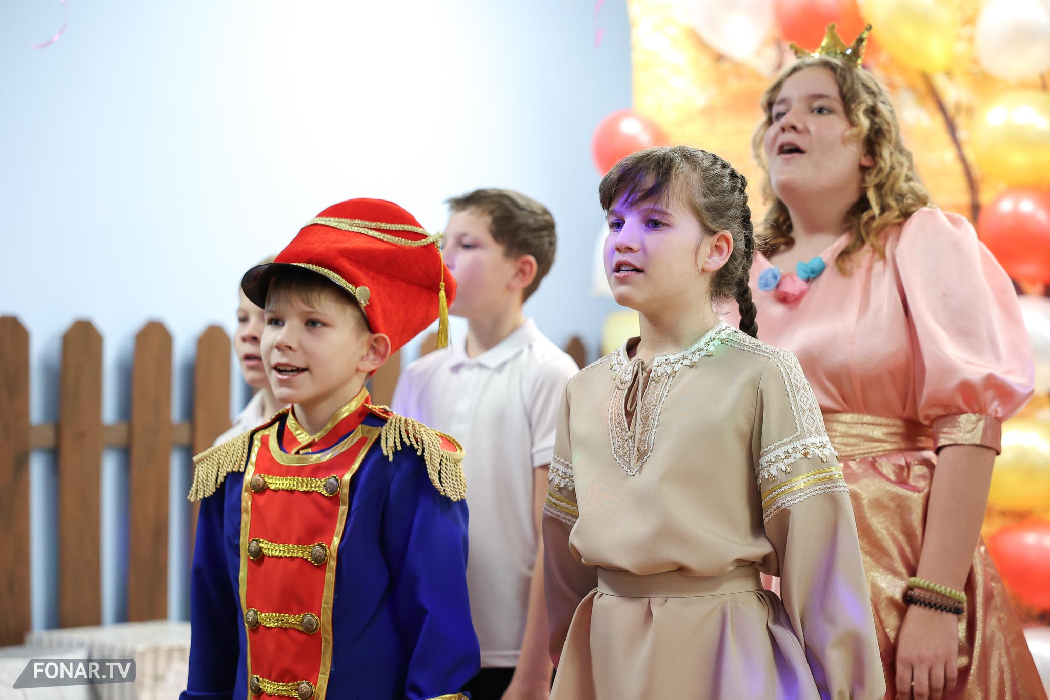 Воспитанники дома детства вместе с наставниками подготовили концерт: был и небольшой спектакль, и музыкальные номера — «Дорога добра» и «Песенка крокодила Гены».
