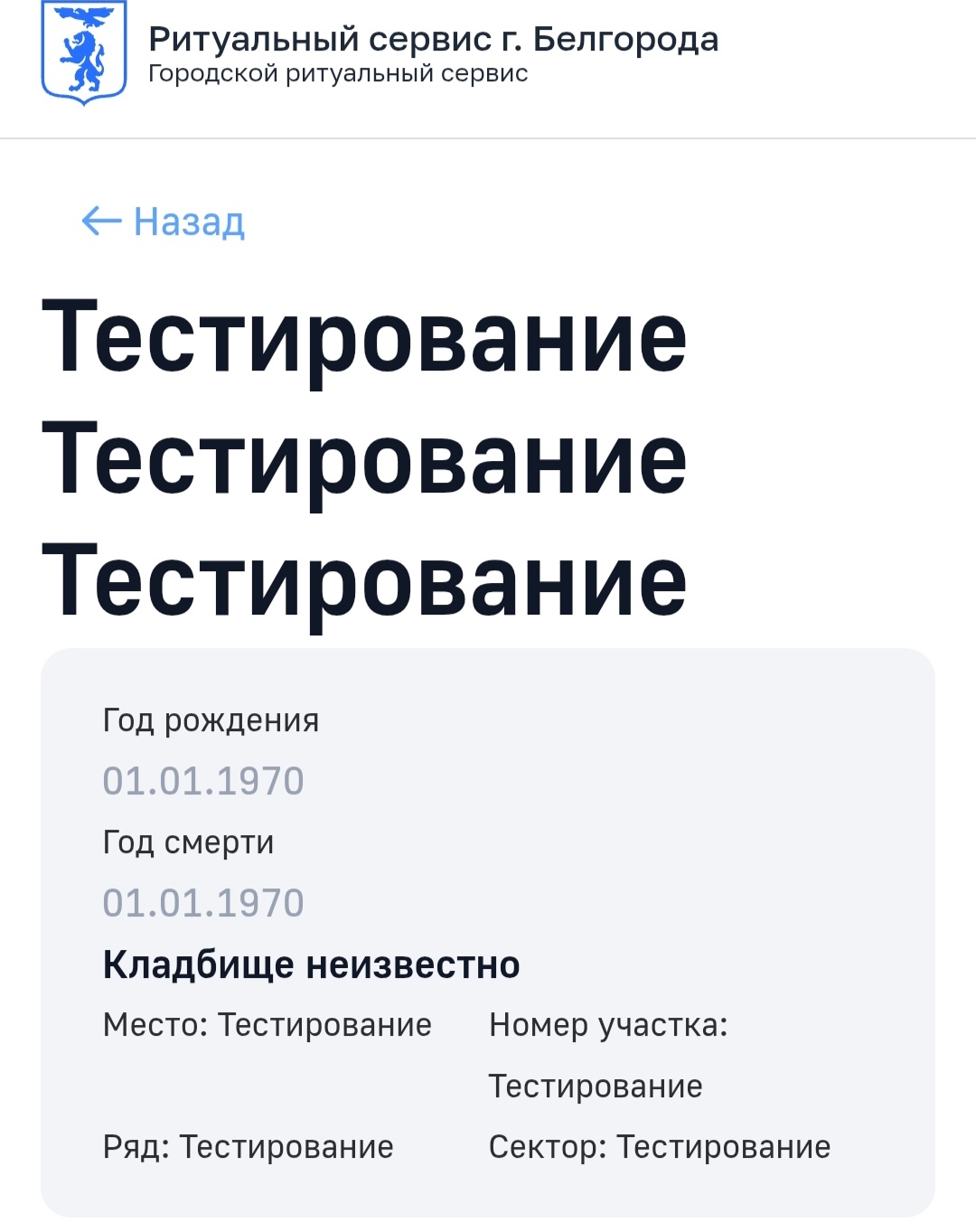 В 2021 году белгородские власти анонсировали проект по цифровизации кладбищ в регионе. Проще говоря, чиновники решили создать онлайн-архив всех могил в области, чтобы люди могли найти там умерших родственников. В 2023 году появились сайты memorial31.ru и belmemorial.ru: там действительно можно было отыскать могилу человека по фамилии, имени и отчеству, а также по дате рождения и дате смерти. Также можно было заказать услуги: возложить цветы, провести уборку и даже покрасить оградку.