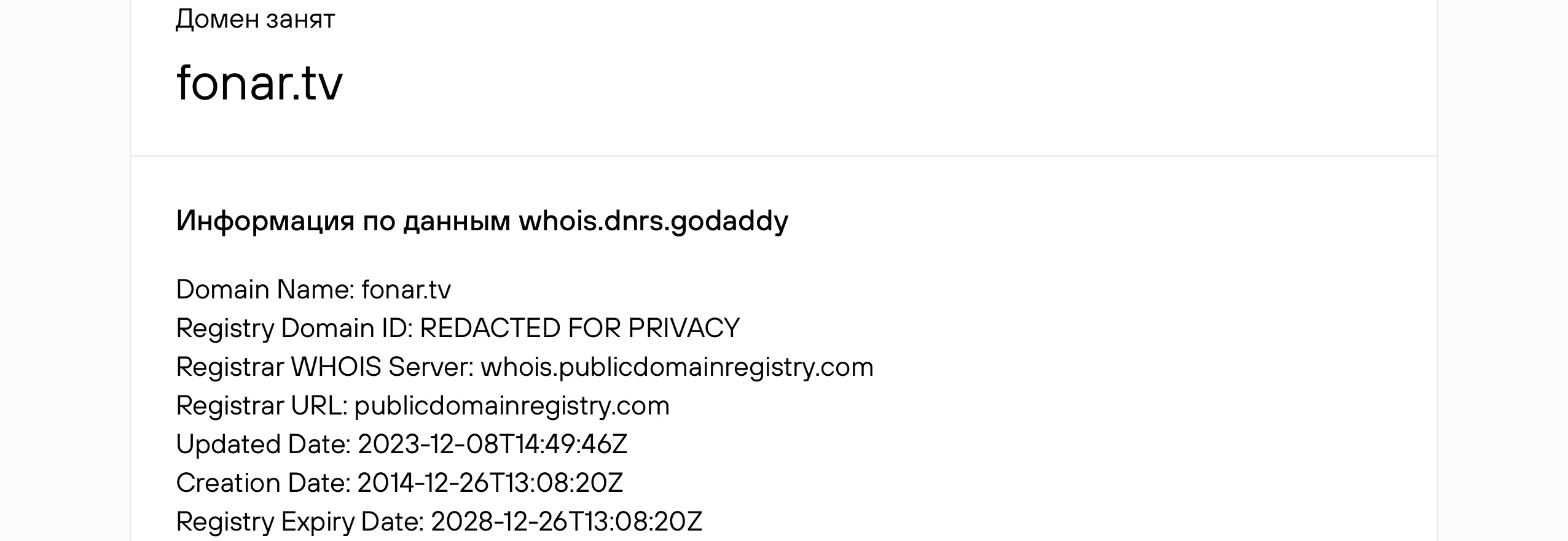 - Новый сайт. Домен зарегистрировали недавно — это можно проверить через специальные сервисы в интернете. (Например, https://www.nic.ru/whois/, https://sweb.ru/whois/ или https://www.reg.ru/whois/ — прим. Ф)