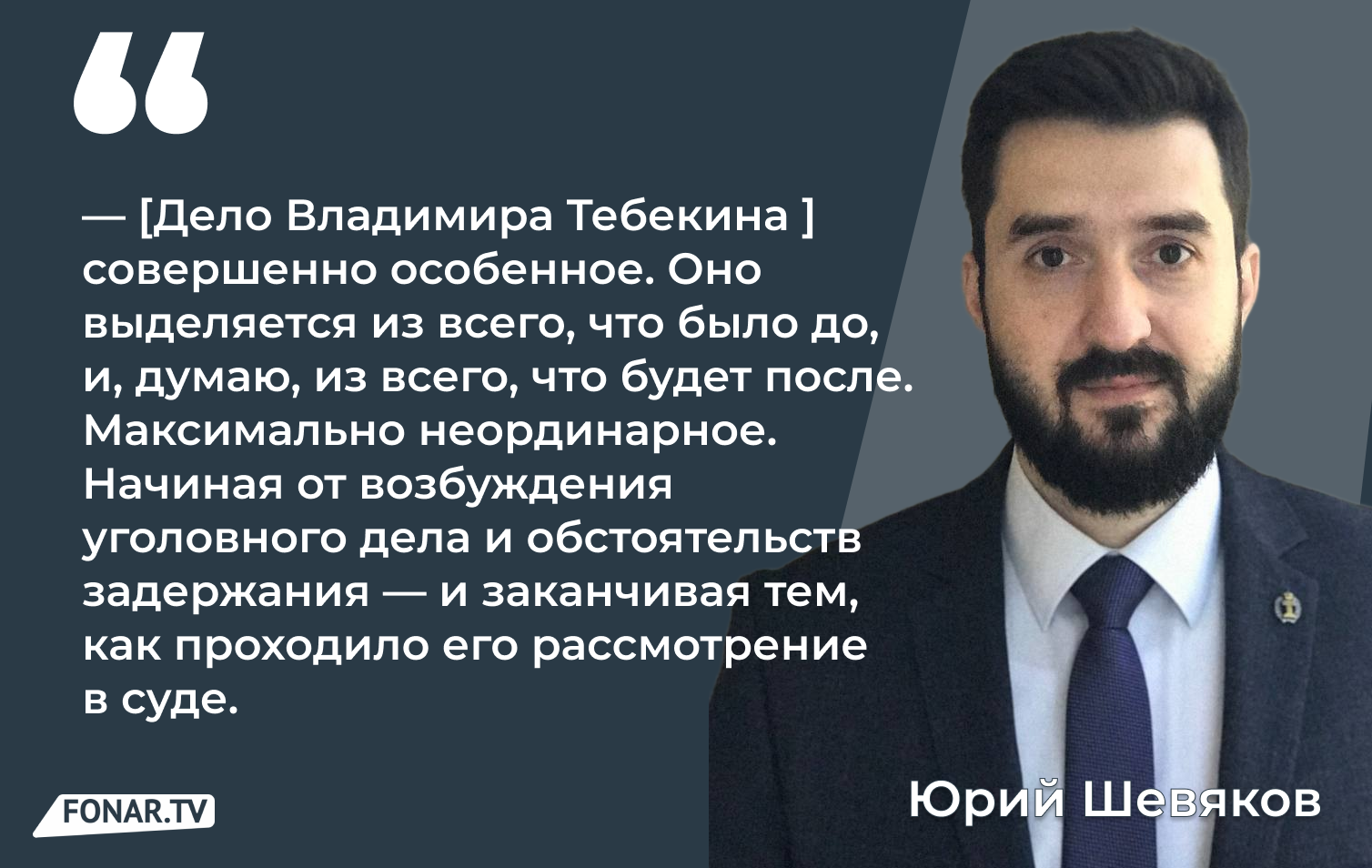 Ранее Шевяков девять лет работал в Следственном комитете, а позже стал работать адвокатом, накопив приличный опыт. Дело Владимира Тебекина — особенное в практике Шевякова. Почему он его выделяет? Каким образом в деле оказался Владимир Тебекин и почему суд наложил арест на имущество его родственников? Почему защиту не устраивает освобождение обвиняемых из-за истечения срока давности — решение, которое приняли судьи при рассмотрении апелляционных жалоб? Какие материалы дела не легли в него во время расследования? Какие аргументы адвокатов не услышал ни суд первой инстанции, ни судебная коллегия в апелляции? Обо всём в этом в нашем новом тексте.