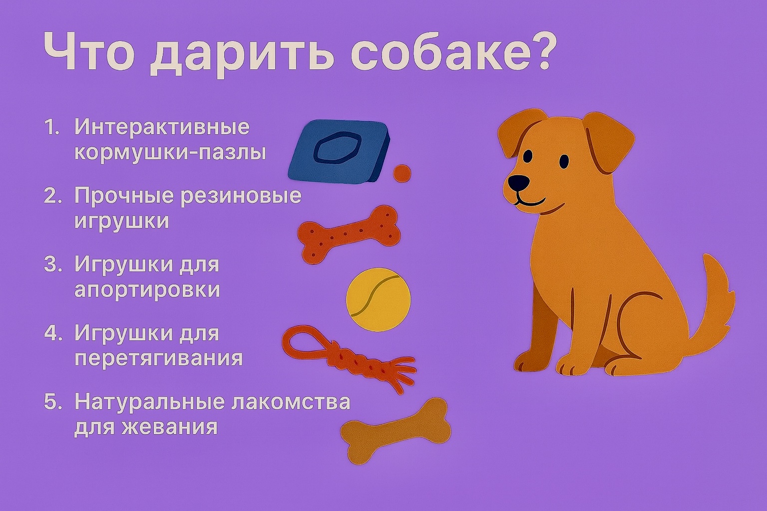 Собаки — социальные, активные животные, которые любят решать задачи и используют челюсти для снятия эмоционального напряжения. Исходя из этого, эксперт рекомендует обратить внимание на несколько типов подарков.