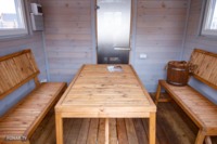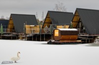 Заселилась в компактный, но уютный домик-шале. Внутри оказалось всё необходимое: мягкая кровать, душ, туалет, и даже небольшая кухня. Самое удивительное — выход к озеру прямо с террасы! А ещё — отдельная баня и чан, где можно попариться на свежем воздухе. Решила, что такую возможность нельзя упускать — попросила персонал устроить мне спа-процедуры.