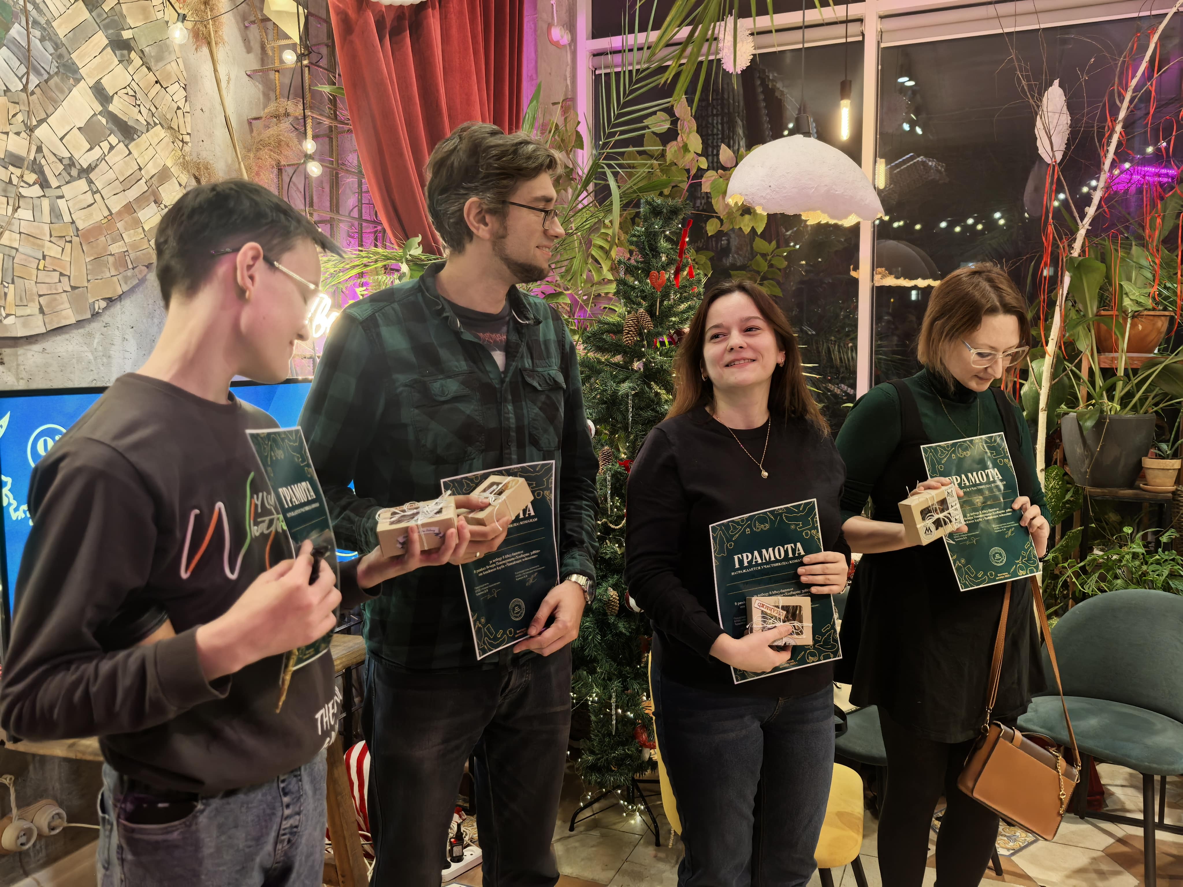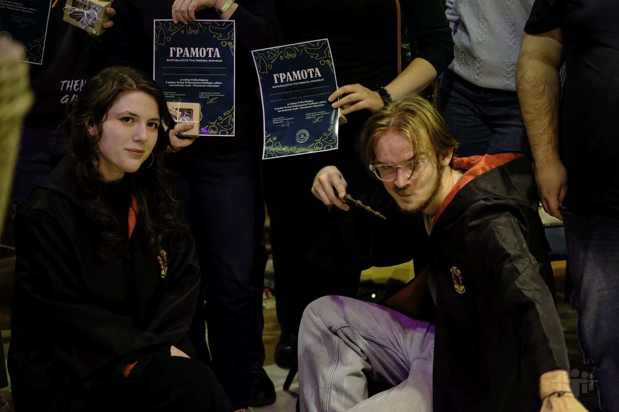 После часовой лекции команды оживились. Со всех сторон был слышен шёпот: «У неё другой патронус», «Блин, как раз забыл имя». Когда вопросы закончились, парень собрал листочки с ответами и передал их организаторам. Они посчитали баллы, а затем объявили победителей. Их наградили грамотами, леденцами и брелоками с вырезками из книжных газет. Помимо этого, самые активные участники тоже получили такие же подарки.