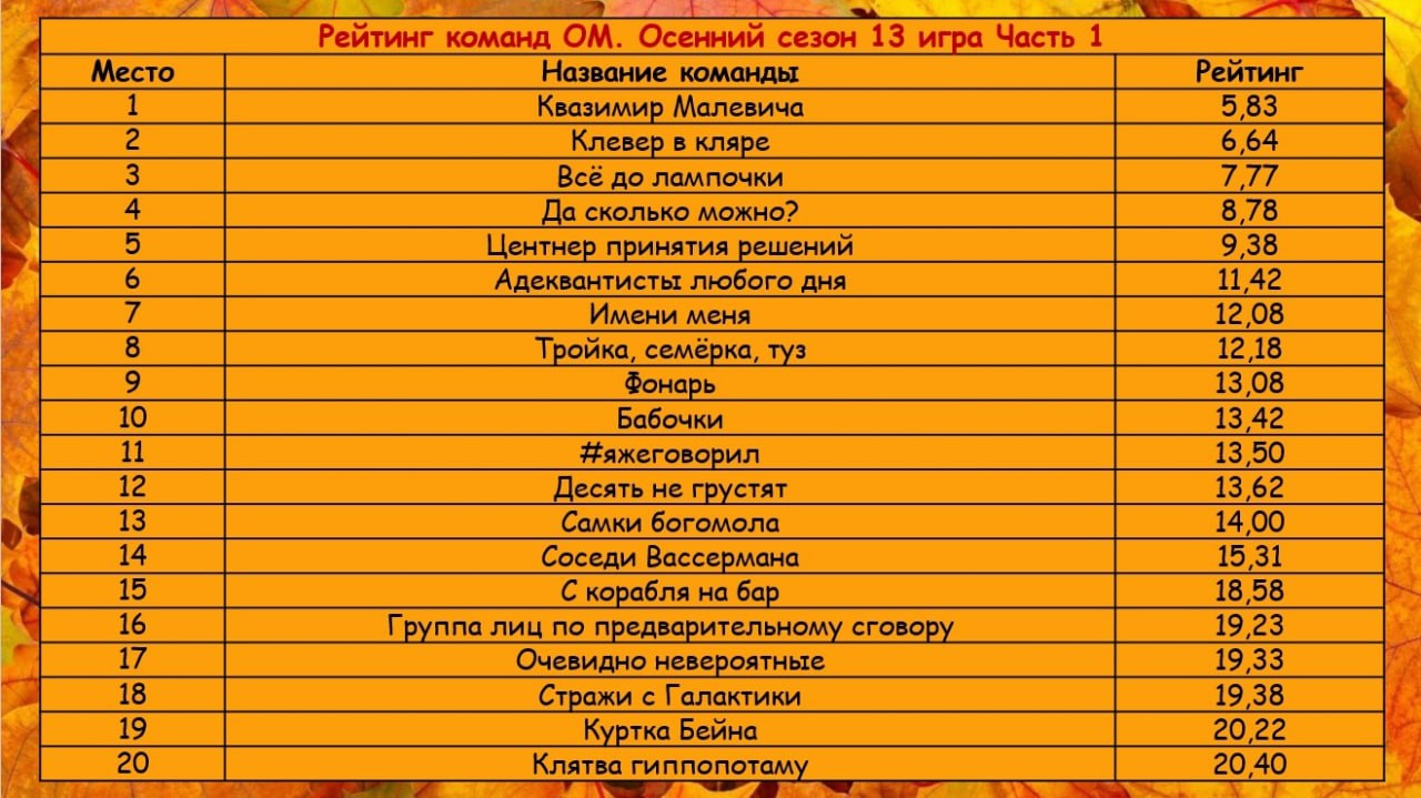 По итогам осеннего сезона тройка сильнейших команд «Особого мнения» в Белгороде выглядела так: