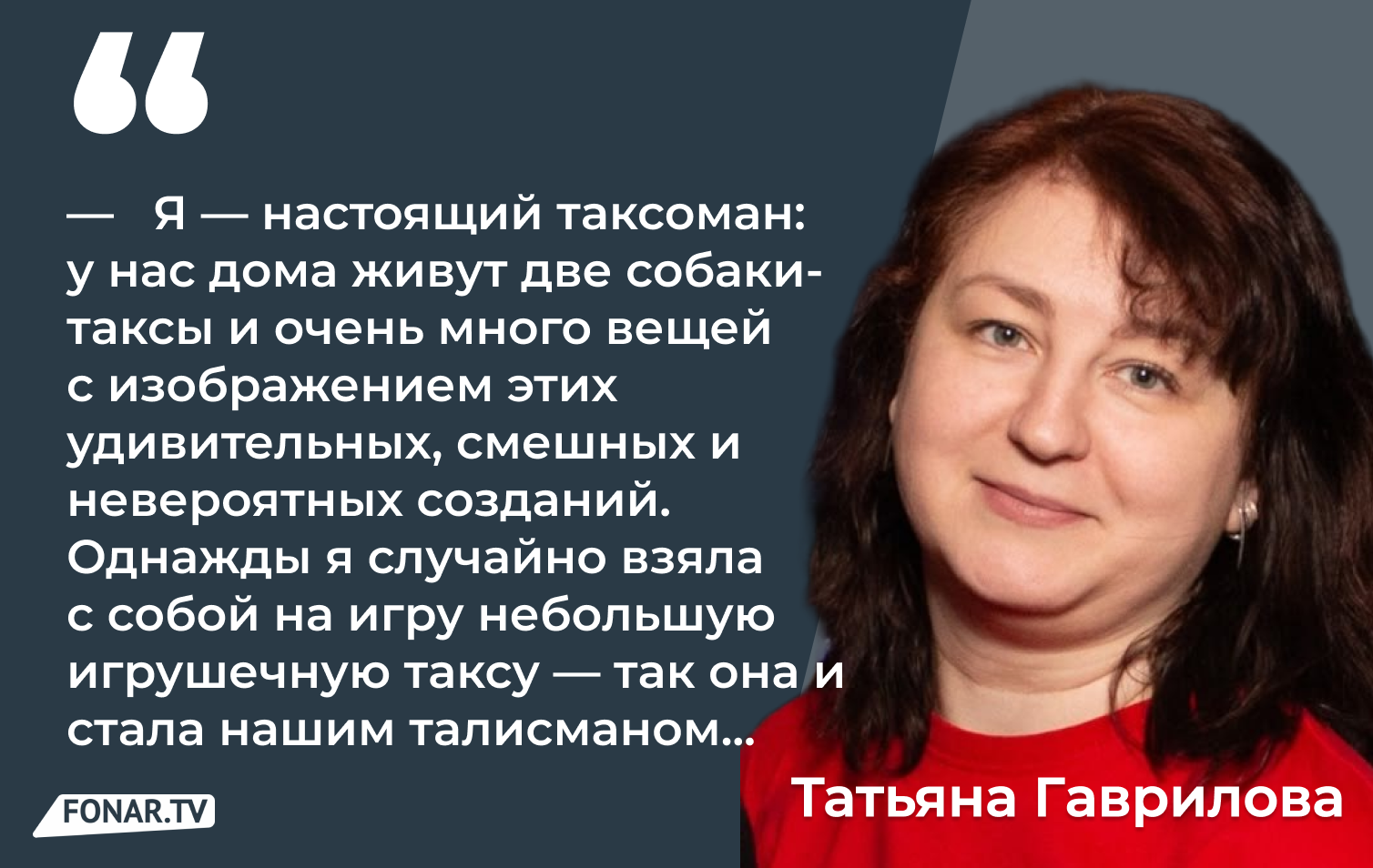 — О да! У нас даже есть талисман. Я — настоящий таксоман: у нас дома живут две собаки-таксы и очень много вещей с изображением этих удивительных, смешных и невероятных созданий. Однажды я случайно взяла с собой на игру небольшую игрушечную таксу — так она и стала нашим талисманом.