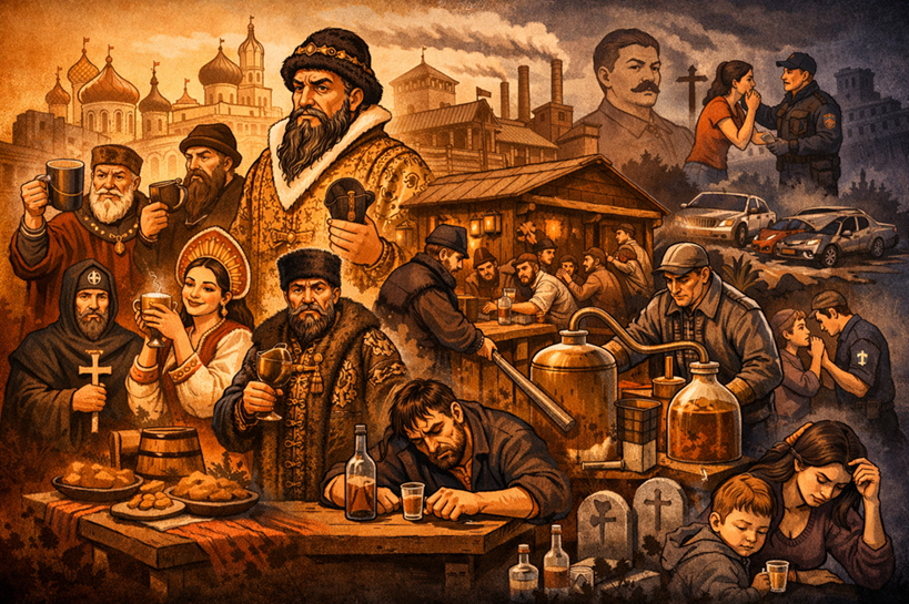 Уже в XVI веке пьянство стало заметной социальной проблемой, особенно среди духовенства. Первым против него выступил Иван III. Он запретил простолюдинам варить медовуху и пиво, грозя за это отрубанием рук. Однако мера была продиктована скорее финансовыми интересами: людей стремились направить в казённые кабаки. Позже Иван Грозный открыл «царёвы кабаки», где подавали более крепкие напитки — хлебное, варёное и горячее вино, по сути самогон. Правда, доступно это было в основном опричникам. Простые люди выпивали лишь по большим праздникам. Если же крестьянин напивался в обычный день, его могли избить батогами.