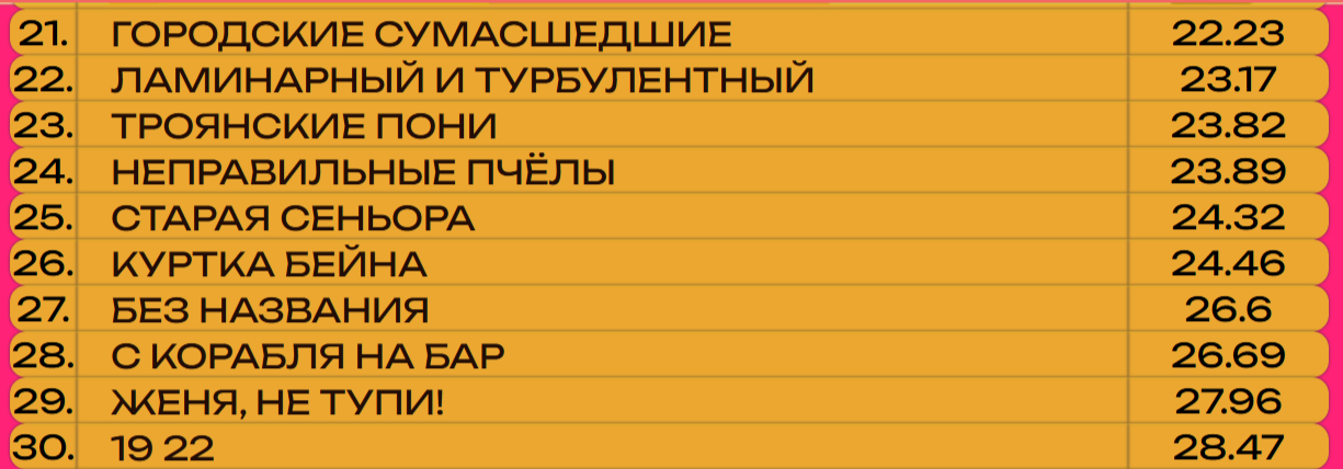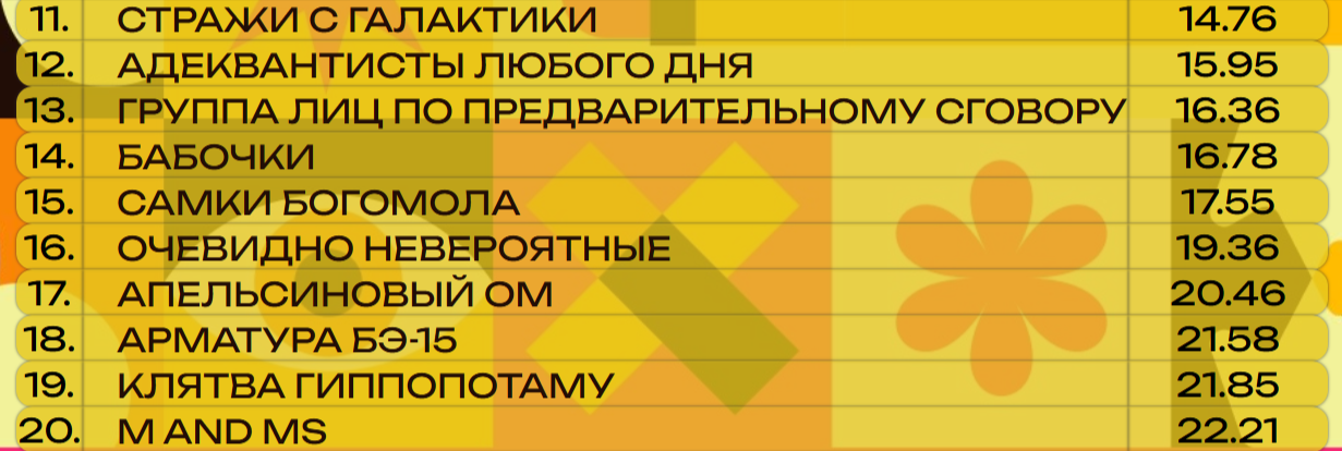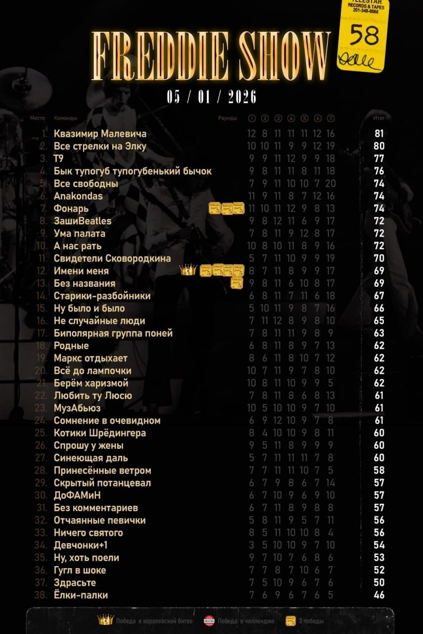На 58-й по счёту игре на вершину пьедестала ворвалась признанная команда квизовых силачей «Квазимир Малевича». На музыкальном квизе они редкие гости, но зато как метко выступают — сразу на первое место!