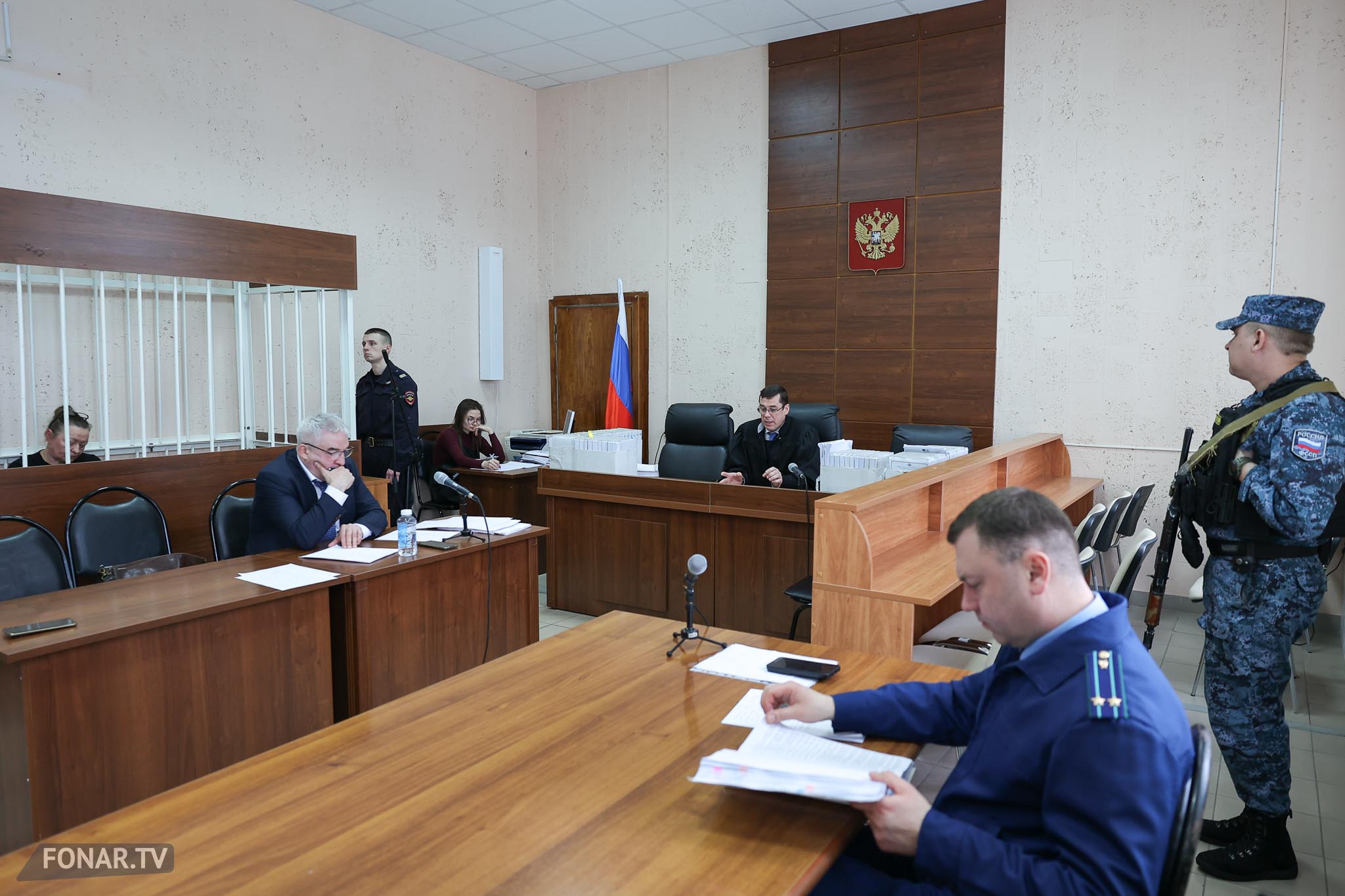 Свидетеля спрашивают, знает ли он Оксану Зубареву — женщину, находящуюся под стражей слева от него.