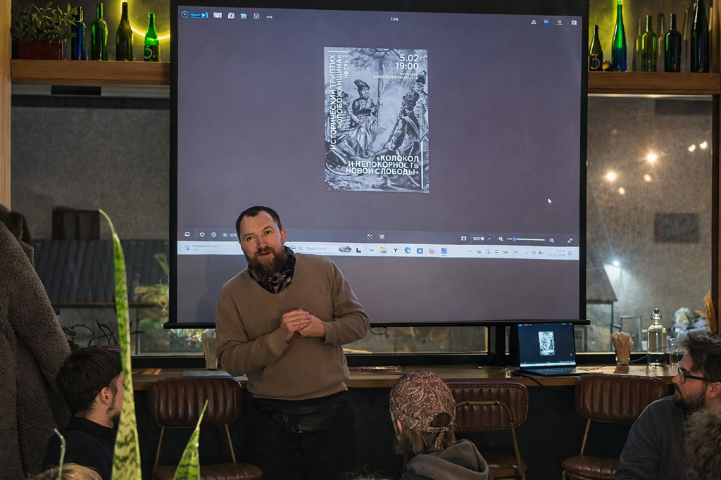 Ведущим первой барной встречи исторического триптиха «Слобожанщина» стал антиквар и экскурсовод Алексей Бондарев. Для него это новый формат: раньше он работал преимущественно на городских экскурсиях. Но эксперимент удался — в пабе собралось несколько десятков человек разного возраста: от студентов до людей постарше. Пришёл даже ребёнок. «Мне главное, чтобы вот он услышал», — пошутил Алексей, обращаясь к маме мальчика.