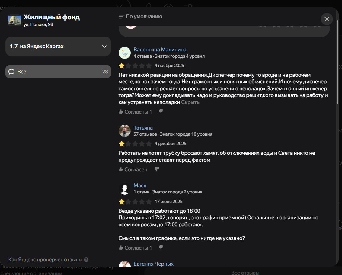 «Работать не хотят, трубку бросают, хамят, об отключениях воды и света никто не предупреждает, ставят перед фактом» — такой отзыв об УК можно прочитать на странице компании.