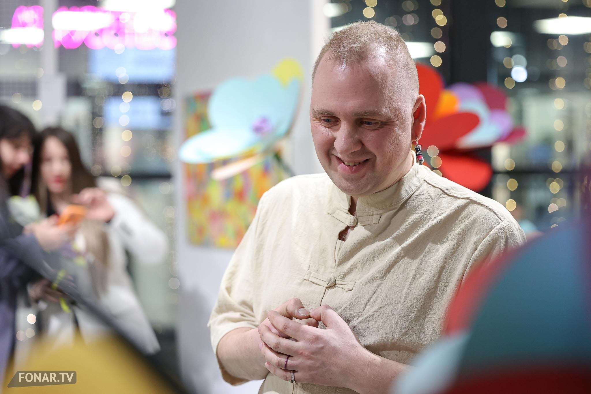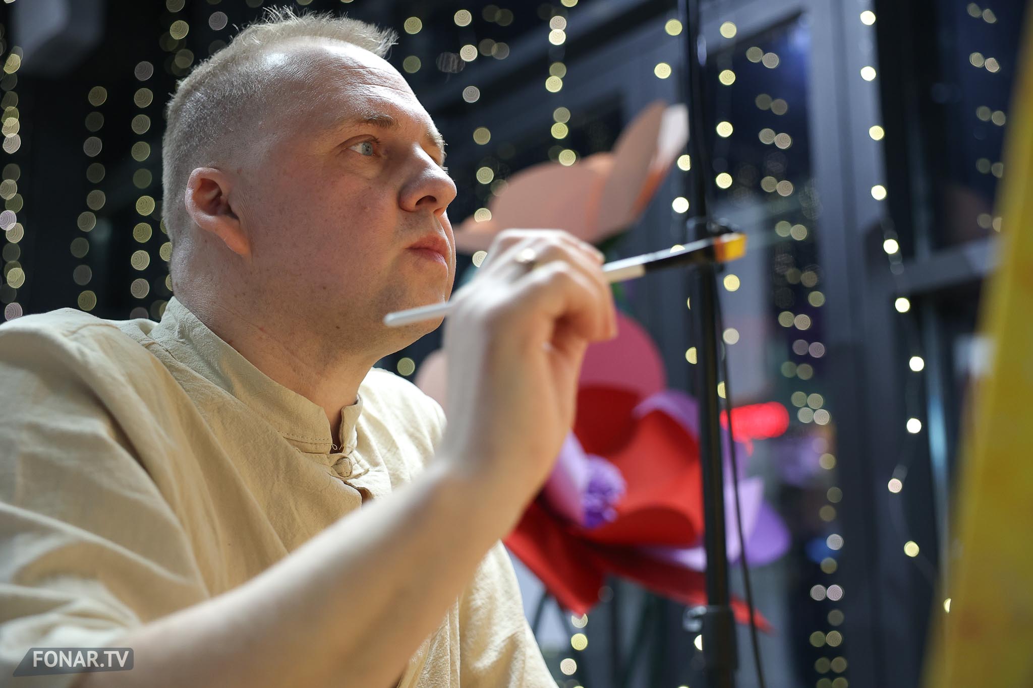 Общую концепцию выставки поддержали и ростовые фигуры цветов, которые художник сделал своими руками.