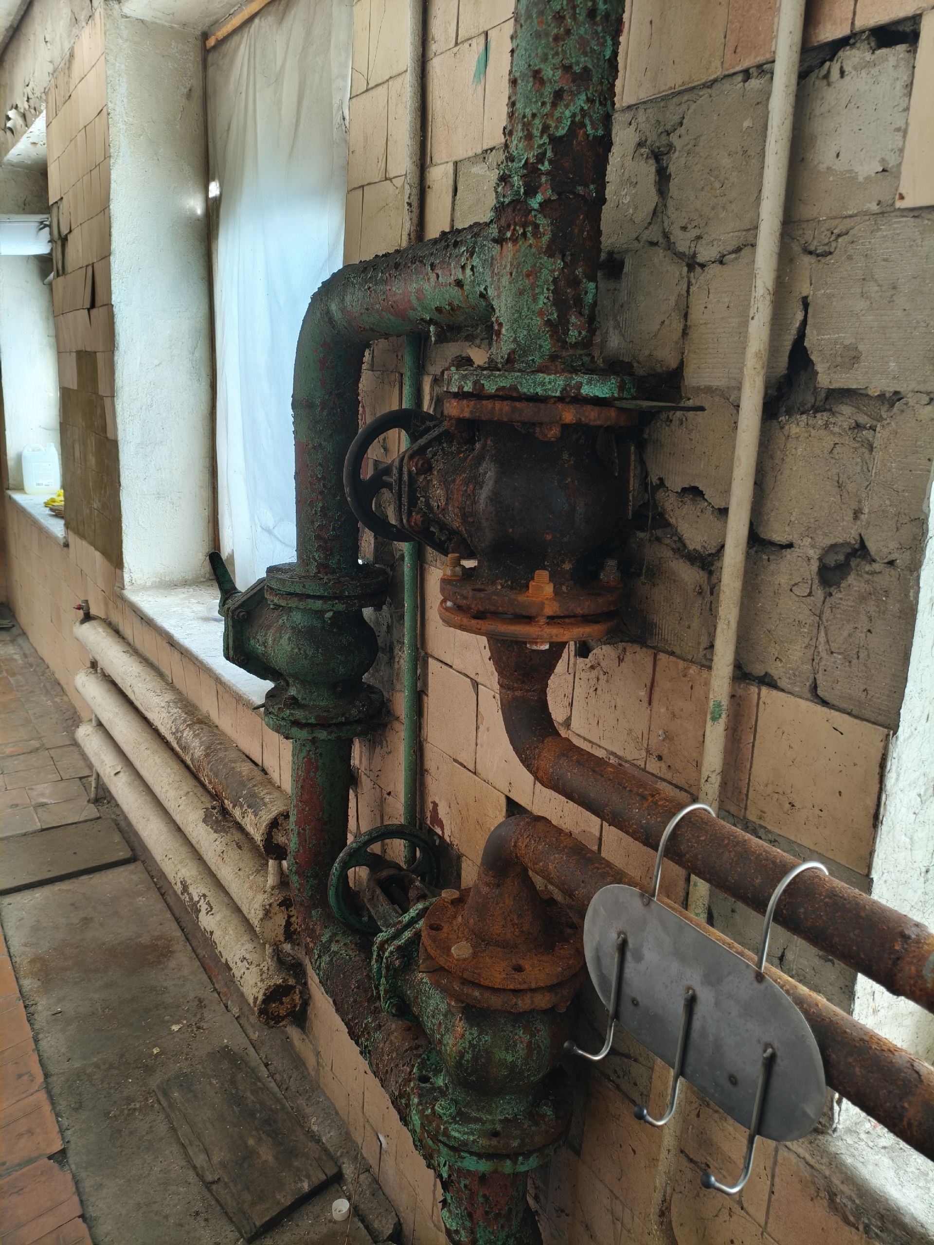 Валерий передал редакции фотографии и видеозаписи, сделанные на заводе. На них — захламлённые помещения, ржавые трубы, ободранные стены. То, что осталось от некогда современного производства.