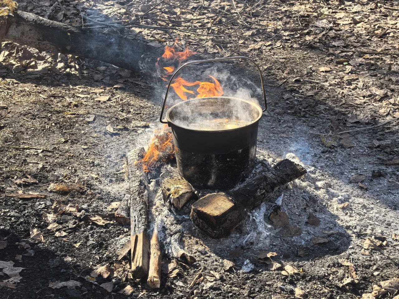После уборки организовали походный обед. Один из участников сварил уху на костре, остальные добавили на общий стол свою запасы и термоса. Велосипедисты выбросили за собой весь мусор и были полны сил продолжить покатушки.