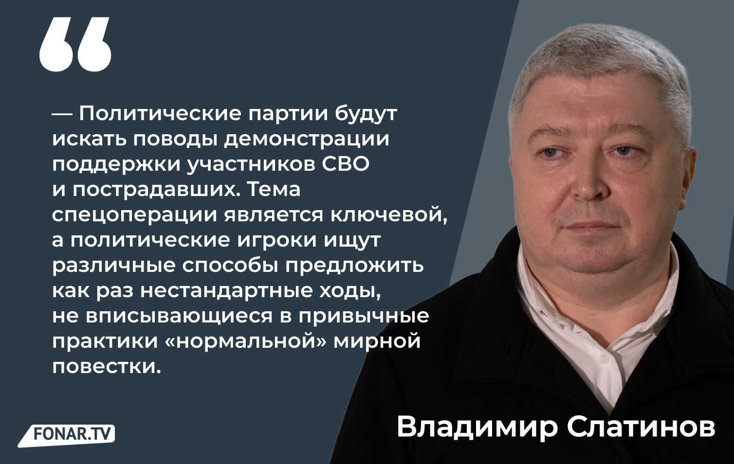 — По сути, речь идёт о выборах, которые проходят в ситуации регулярного военного воздействия на значительную часть территории области. Избирательная кампания в таких условиях не может подчиняться правилам «стандартного» электорального процесса, да и законодательные нормы применяются в такой ситуации с оговорками. Ясно также, что традиционных признаков политической конкуренции мы не увидим, агитация в привычном виде вестись не будет. Политические партии будут искать поводы демонстрации поддержки участников СВО и пострадавших. Тема спецоперации является ключевой, а политические игроки ищут различные способы предложить как раз нестандартные ходы, не вписывающиеся в привычные практики «нормальной» мирной повестки. Инициатива Вячеслава Гладкова — из этого ряда, — обозначил свою позицию политолог.