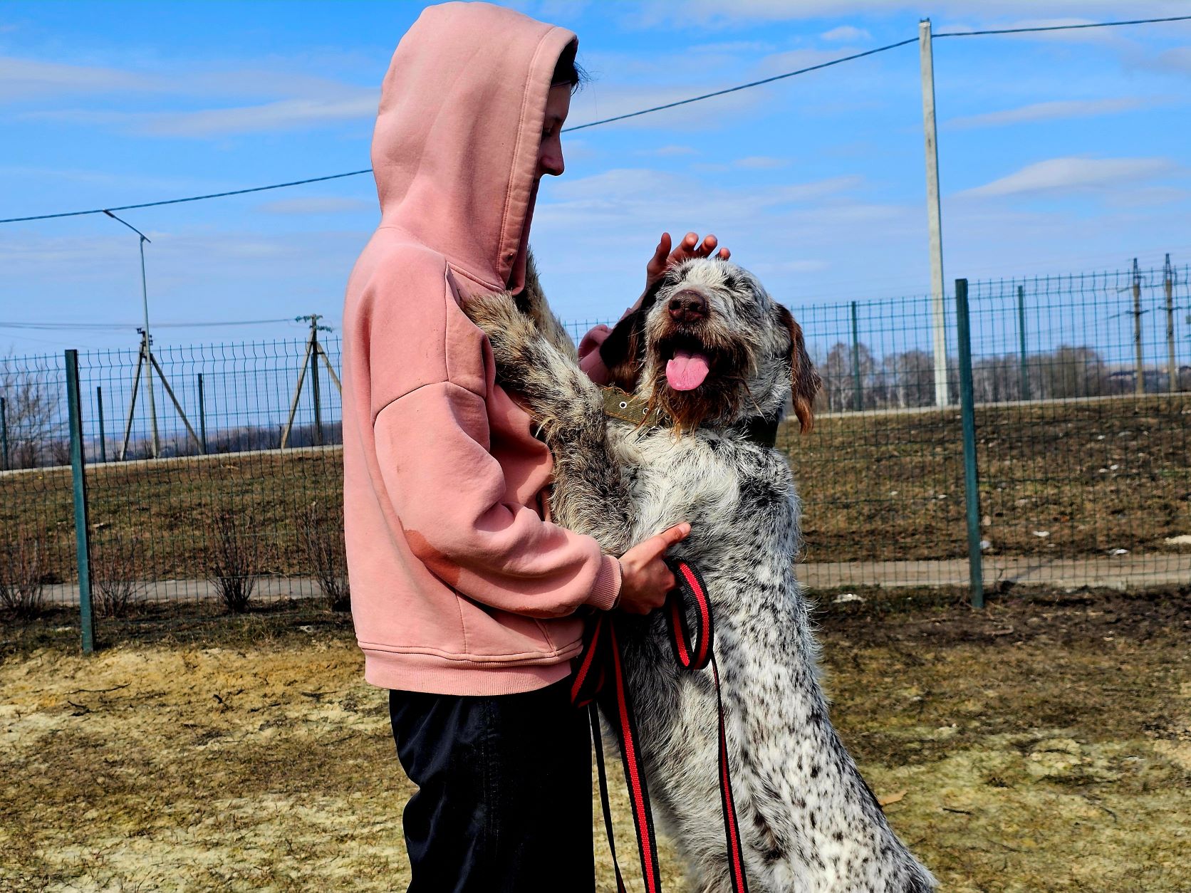 Она открыла вольер с пятилетним Томом породы дратхаар. Лохматому псу надели поводок и отвели в специальную зону для выгула, где девушка отпустила его. Том, трясущийся от нетерпения, резвился по площадке, периодически от счастья и по нужде помечая территорию. Он так и норовил выплеснуть свою радость: мчался прямо на Дарину, чуть не сбивая её с ног, тянул к рукам девушки свои лохматые лапы, жмурился на солнышке и высовывал язык — собачье счастье, вот, что оставила после себя эта прогулка.