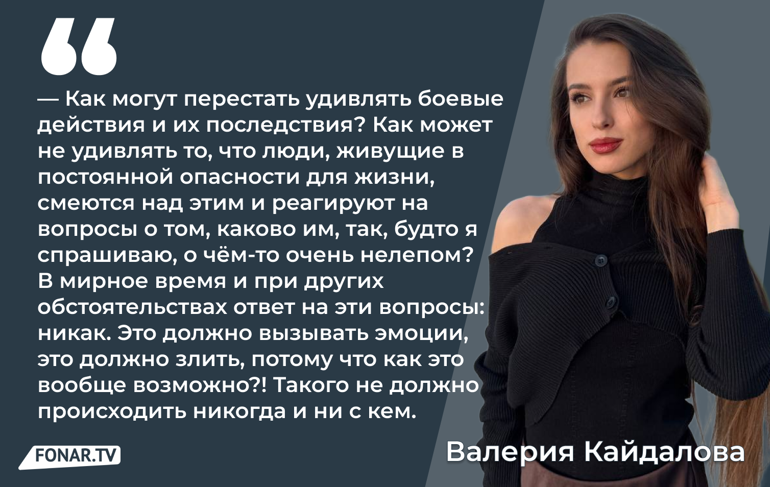 Как могут перестать удивлять боевые действия и их последствия? Как может не удивлять то, что люди, живущие в постоянной опасности для жизни, смеются над этим и реагируют на вопросы о том, каково им, так, будто я спрашиваю, о чём-то очень нелепом? В мирное время и при других обстоятельствах ответ на эти вопросы: никак. Это должно вызывать эмоции, это должно злить, потому что как это вообще возможно?! Такого не должно происходить никогда и ни с кем. Но мы все — жители Белгородской области.
