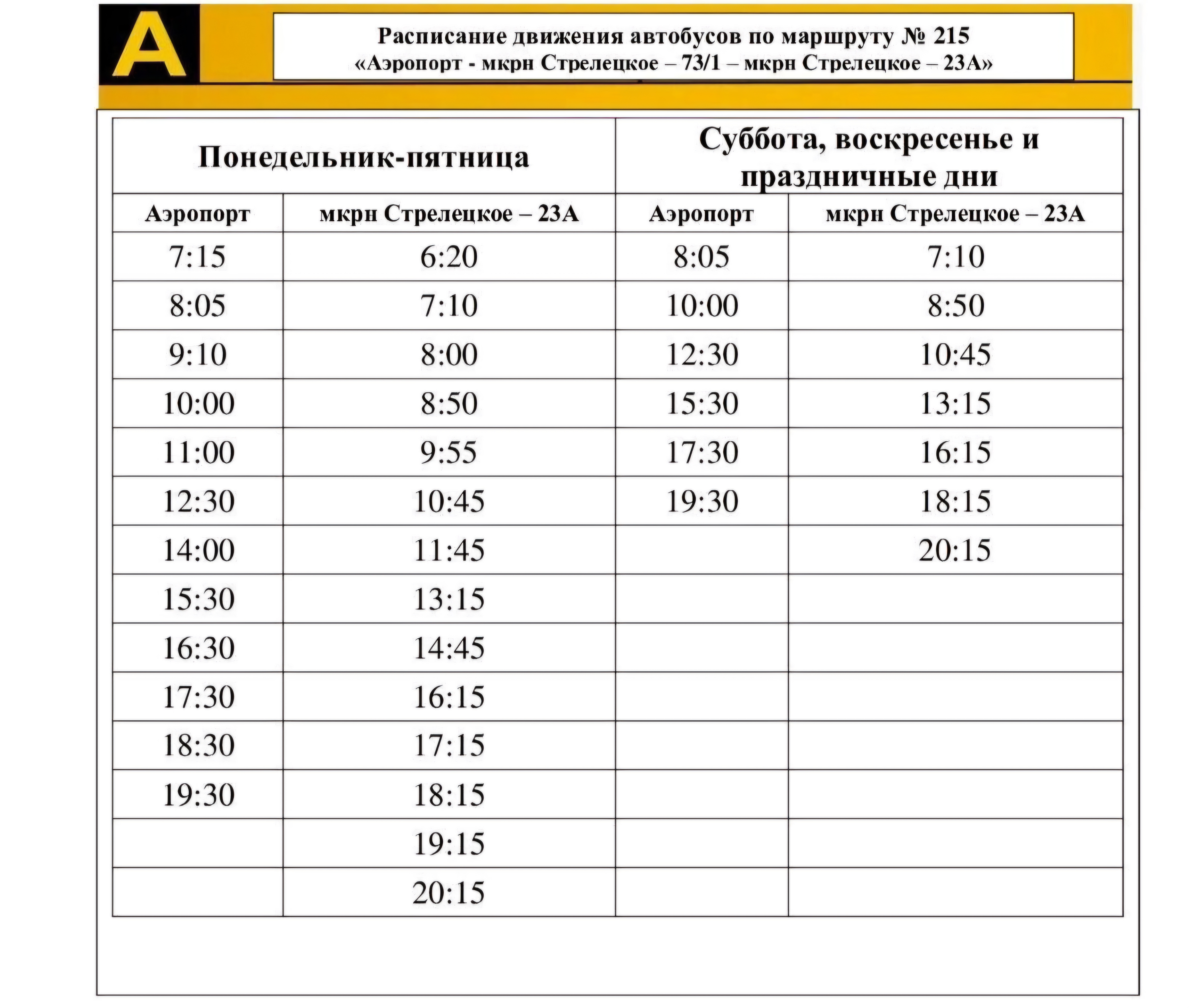 Маршрут получил официальное название: «Аэропорт — мкр. Стрелецкое — 73/1 — мкр. Стрелецкое — 23А». Расписание уже готово — с ним можно познакомиться ниже. При его подготовке учитывали загруженность дорог и предполагаемый поток пассажиров.