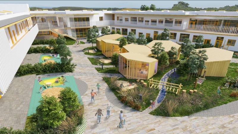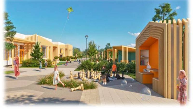 Детский сад будет двухэтажным, с бассейном, тематическими игровыми площадками и благоустроенной территорией.