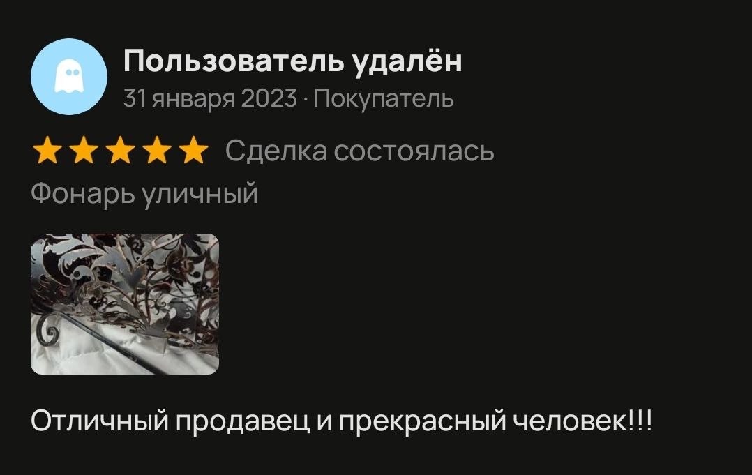Более того, Елена узнала, что Павлюченко уже продал несколько работ других студентов предположительно также без их ведома. С 2022 года он продал минимум четыре студенческих проекта: кованый фонарь, журнальный стол, напольный торшер и костровую чашу.