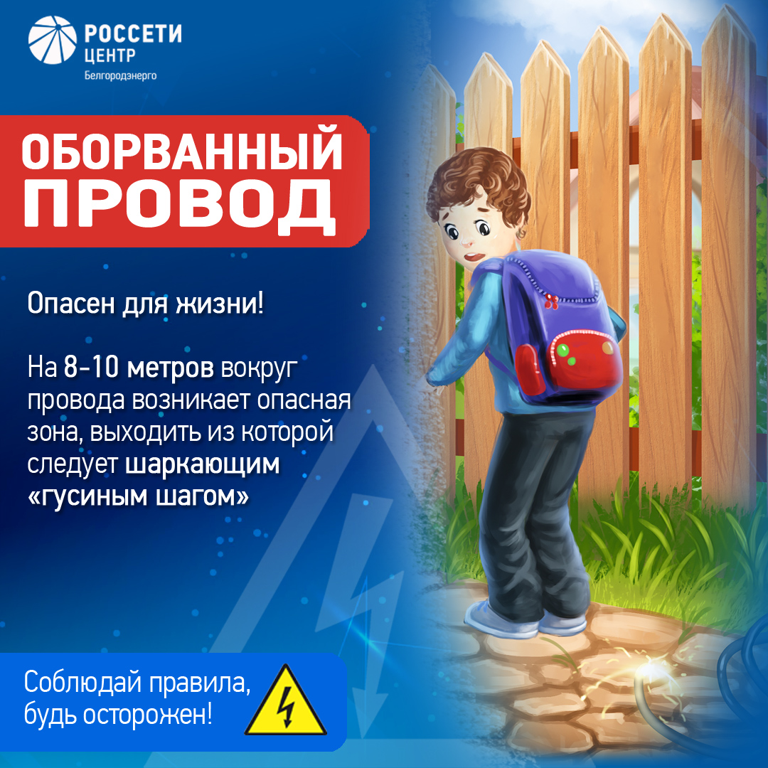 Как сообщили в пресс-службе «Белгородэнерго», особую угрозу представляет оборванный провод. К нему нельзя приближаться. Если человек оказался в радиусе 8–10 метров, уходить нужно «гусиным шагом», не отрывая ног от земли.