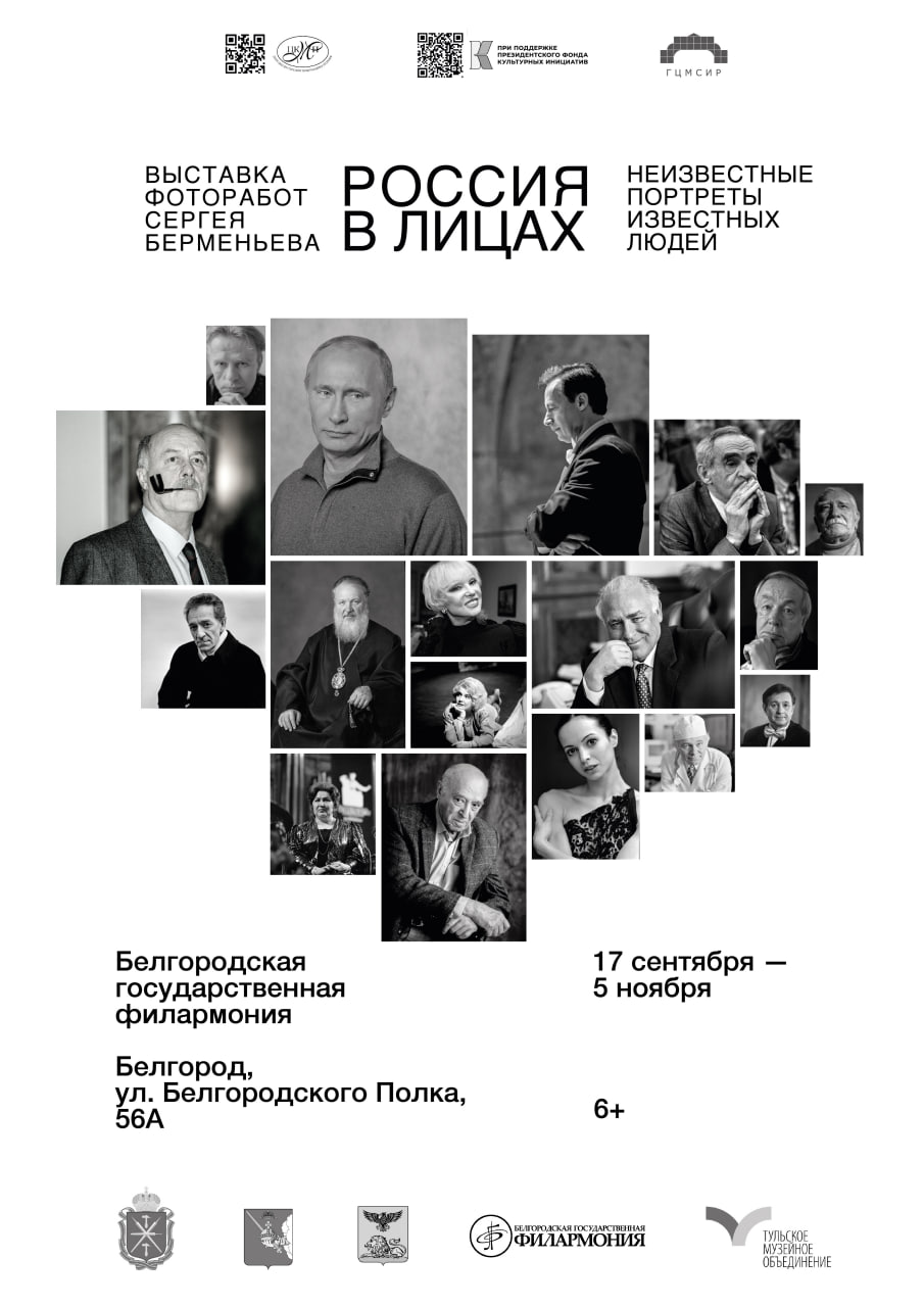 В среду, 17 сентября, в 16:00 в Белгородской государственной филармонии открылась выставка «Россия в лицах. Неизвестные портреты известных людей». В экспозиции представили работы одного из ведущих мировых фотографов-портретистов Сергея Берменьева. Проект воплотили в жизнь благодаря поддержке Президентского фонда культурных инициатив.