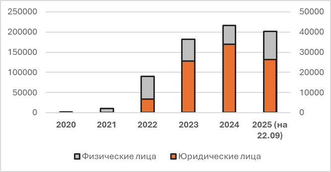 В 2024 году через СБП прошло 215,7 тысячи платежей физических лиц и 33,8 тысячи — юридических. По данным на конец сентября 2025 года эти цифры превысили 202 тысячи и 26, 3 тысячи оплат соответственно.