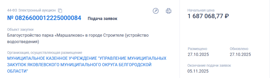Ещё более 1,6 миллиона рублей выделили на благоустройство парка «Маршалково» в Яковлевском муниципальном округе. Согласно данным портала госзакупок, эти деньги направят на устройство водоотведения.