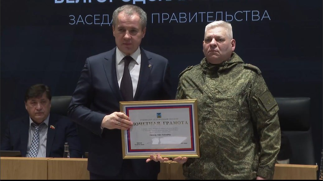 Вячеслав Гладков награждает военных, скриншот с заседания правительства