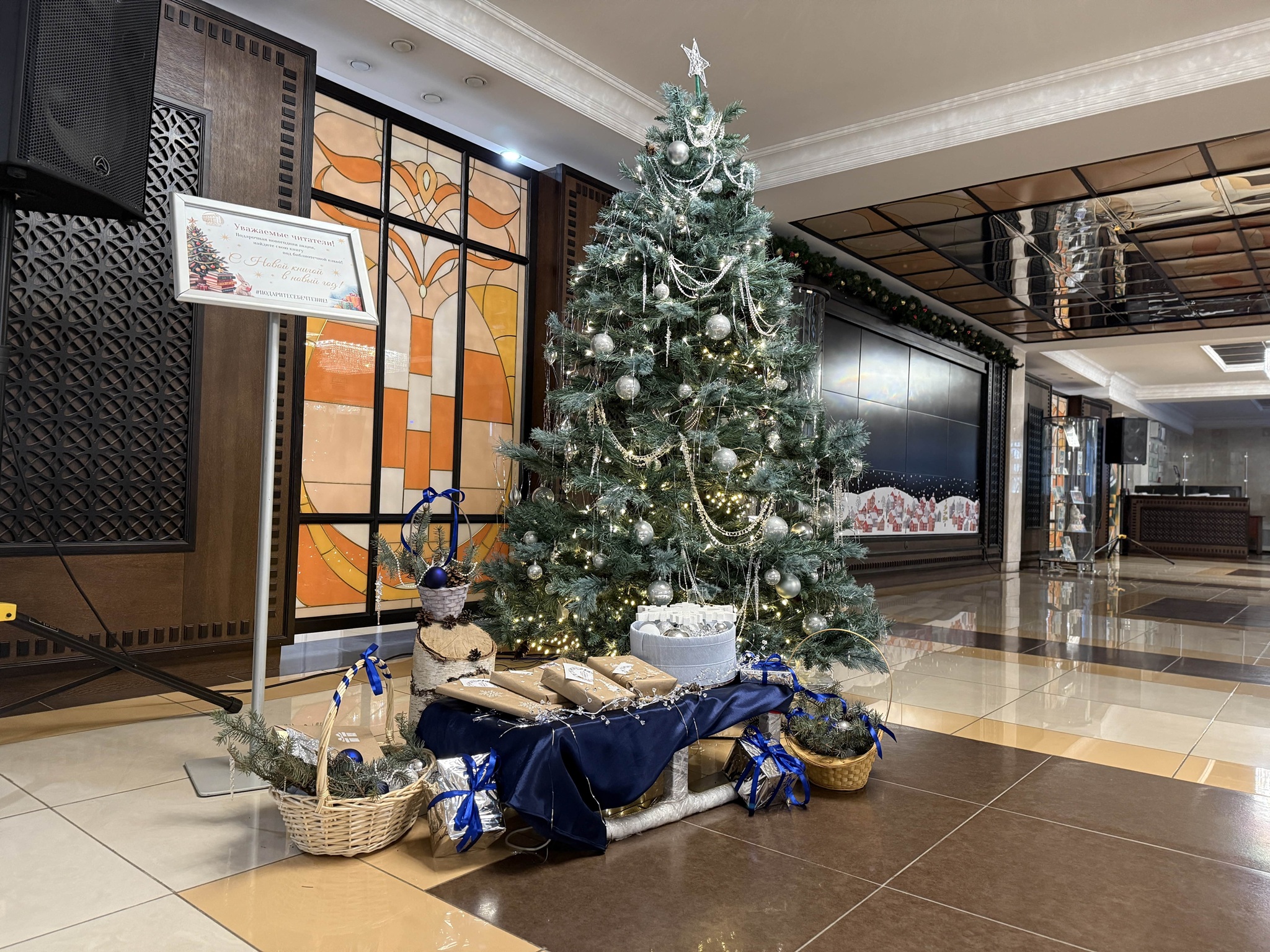 В ближайшие четыре дня на первом этаже библиотеки, под новогодней ёлкой, можно найти аккуратно упакованные книги. Любой посетитель может взять одну из них совершенно бесплатно. Все издания завернуты в непрозрачную бумагу — настоящий «книжный сюрприз», который можно унести домой и распаковать уже после боя курантов.
