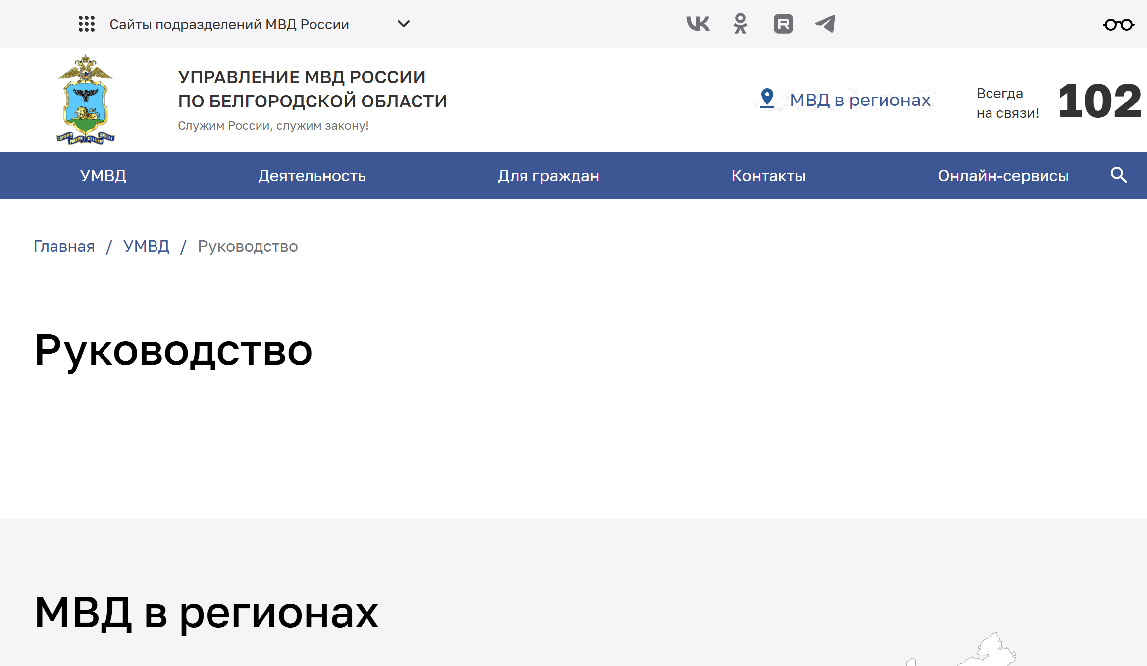 Скриншот сайта УМВД по Белгородской области по состоянию на 2 января 2025 года