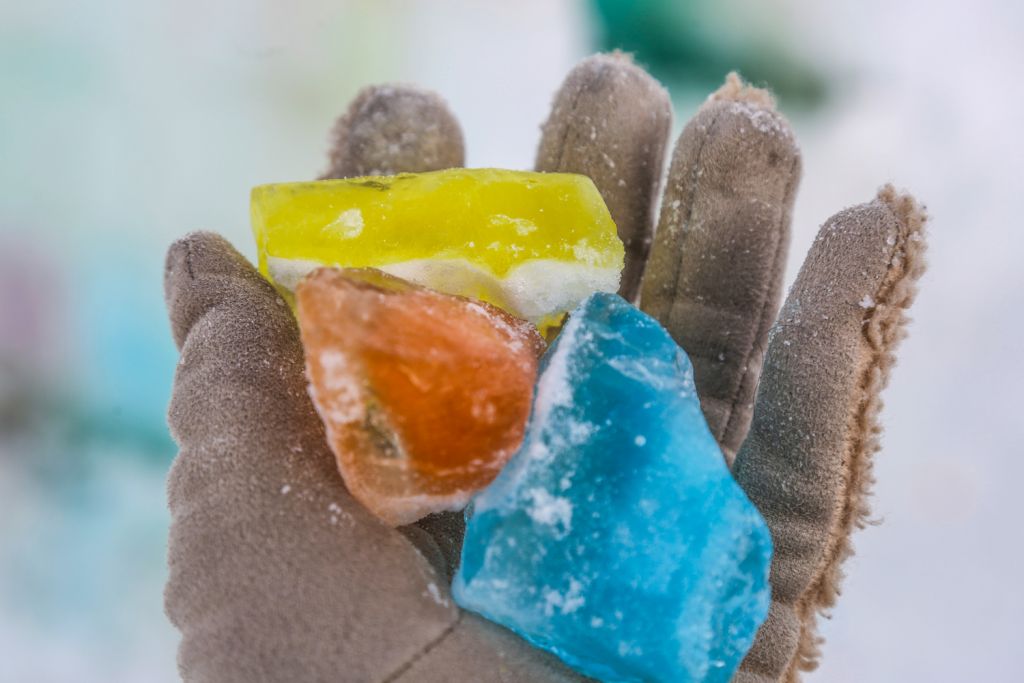 Как рассказал Сергей, сильный мороз, особенно около -30°, только мешал — формы намертво примерзали. Идеальной для работы он назвал температуру -15°. Блоки укладывали на мокрый снег, который служил «цементом». Для финальной отделки строитель прошёлся по куполу шлифмашинкой и обработал его горелкой, чтобы сделать стены прозрачными и гладкими.