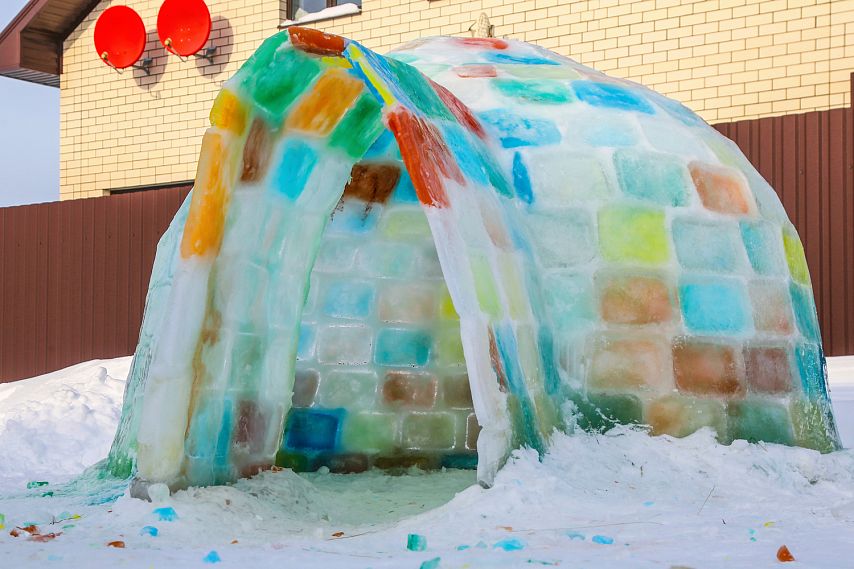 Семья Сальниковых из Старого Оскола этой зимой построила во дворе собственного дома иглу — традиционное жилище эскимосов — из цветного льда. Об этом уникальном эксперименте пишет издание Oskol.city.