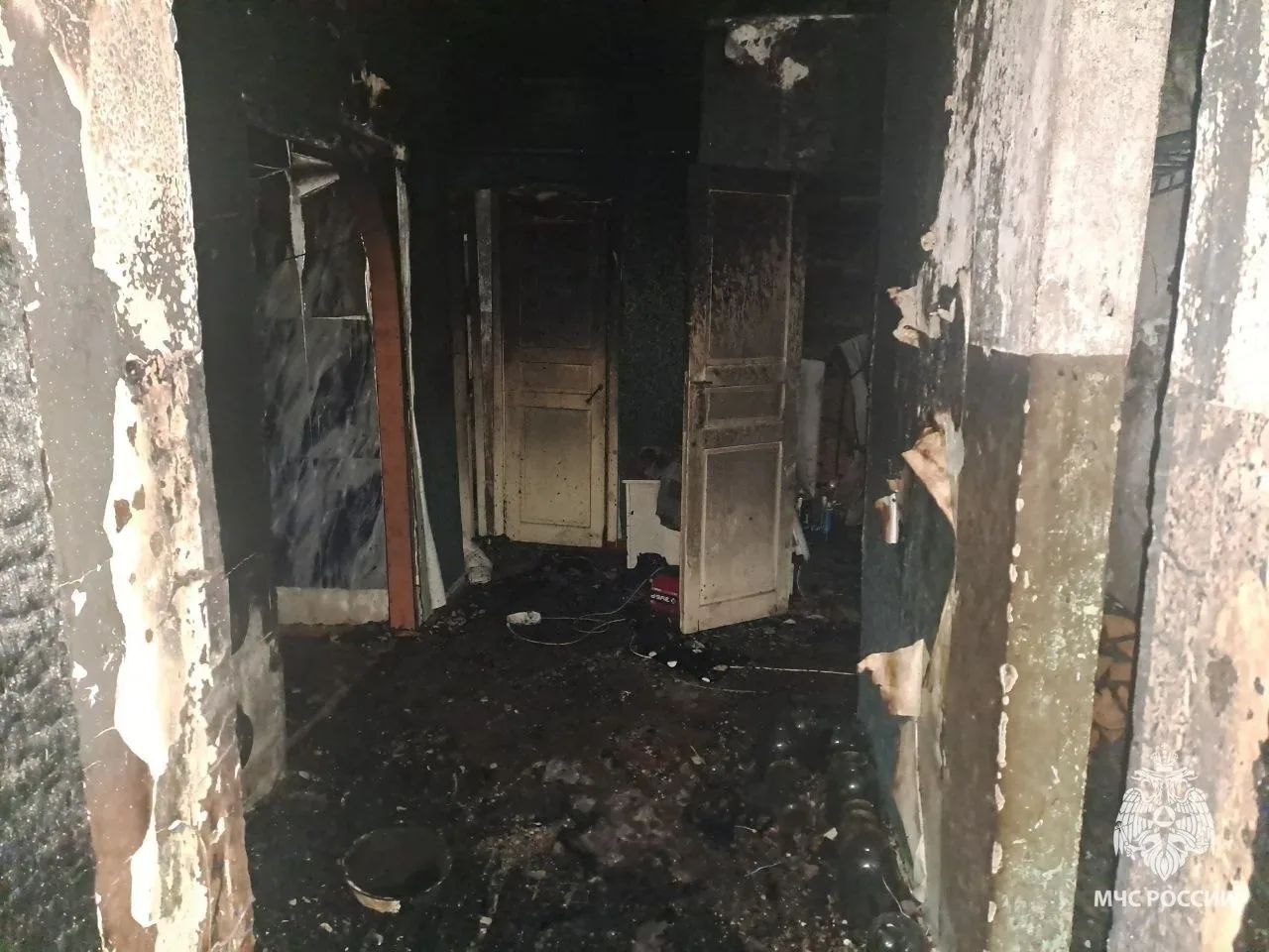 К месту приехали пожарные из трёх частей и потушили пламя за 47 минут. Огонь повредил мебель и вещи в коридоре, оплавил деревянную обрешётку, закоптил стены и потолок.
