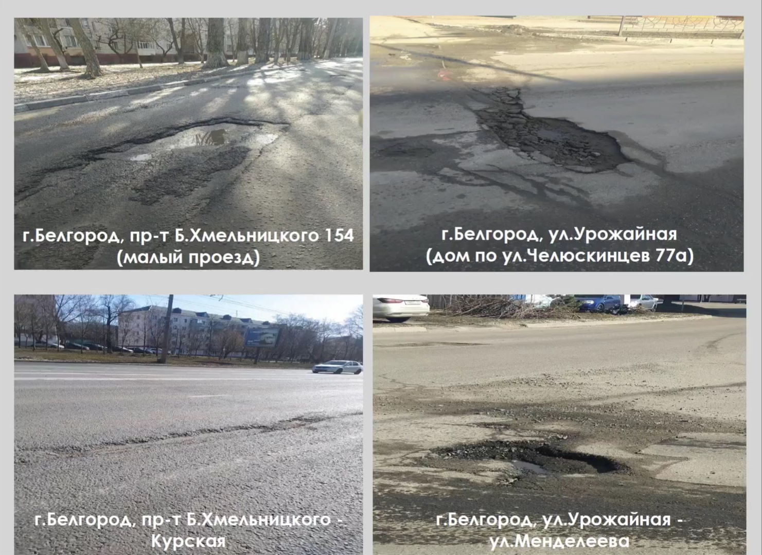 Уже сейчас дорожники насчитали больше 44 тысяч выбоин и дефектов. Это почти в шесть раз больше, чем муниципалитеты планировали ремонтировать изначально. Больше всего ям на обычных городских и второстепенных улицах. При этом заделали только каждую пятую яму — 22 процента от общего числа. Хуже всего ситуация в Белгородском районе: там устранили всего девять процентов дефектов, а контракты на ремонт до сих пор не заключили.