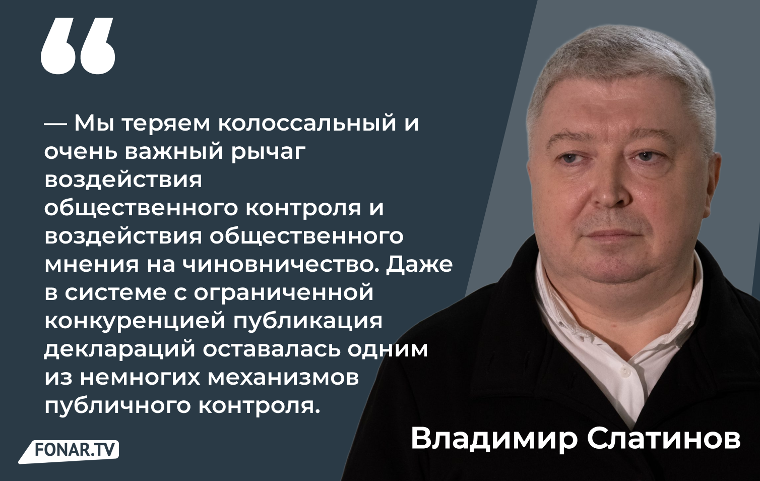 Слатинов не исключает, что такие механизмы будут использоваться и во внутриполитической борьбе, но для общества этот процесс станет непрозрачным. «У граждан фактически забирают возможность хотя бы на базовом уровне оценивать доходы и имущество должностных лиц», — говорит он.