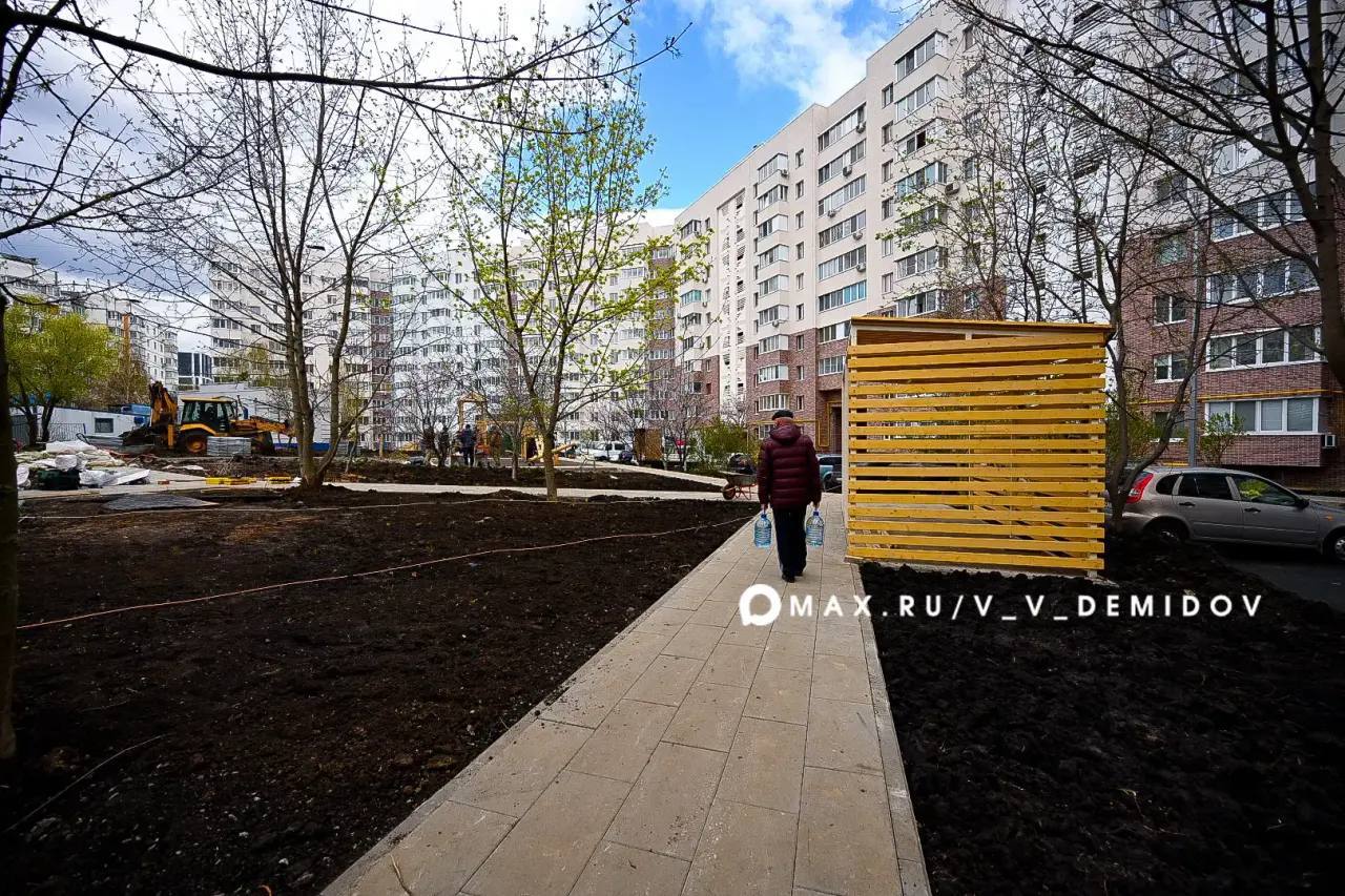 Благоустройство дворовой территории дома №55а на улице Щорса в Белгороде выполнено на 80 процентов. Завершить работы планируют к 12 мая — годовщине трагедии, когда в результате ракетного удара ВСУ обрушилась часть дома. Об этом сообщил мэр Валентин Демидов.