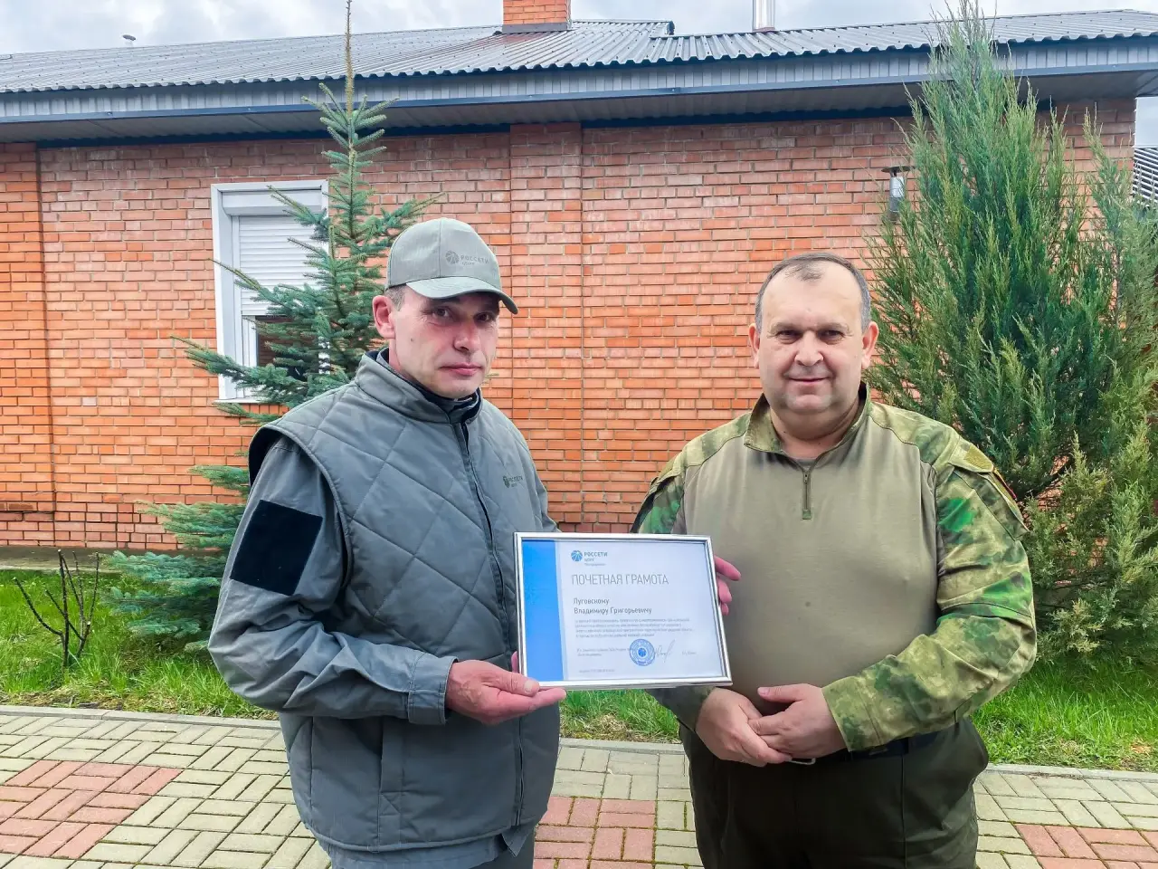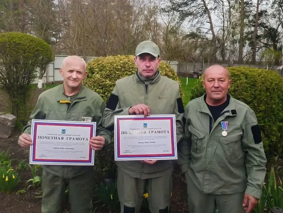 За смелость и стойкость Валерий Сероштан и Валерий Журавлёв получили почётные грамоты губернатора. Владимир Луговской награждён почётной грамотой «Белгородэнерго». А Валерий Сероштан к своему 65-летию также получил ведомственную медаль «За заслуги в развитии топливно-энергетического комплекса» II степени. Награды вручили заместитель главного инженера Сергей Макеев, начальник управления по работе с персоналом Татьяна Бавыкина и начальник Грайворонского РЭС Игорь Задачин.