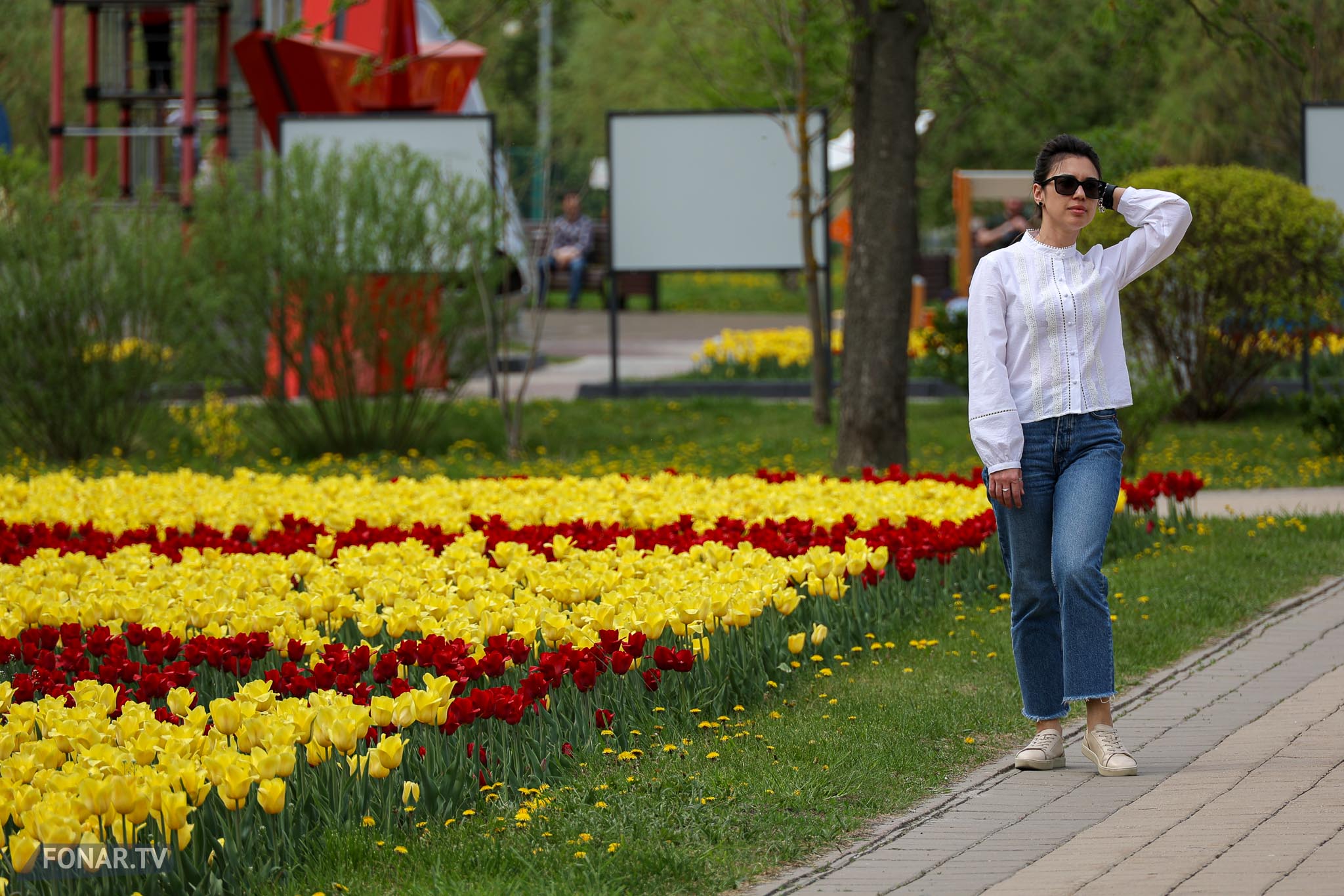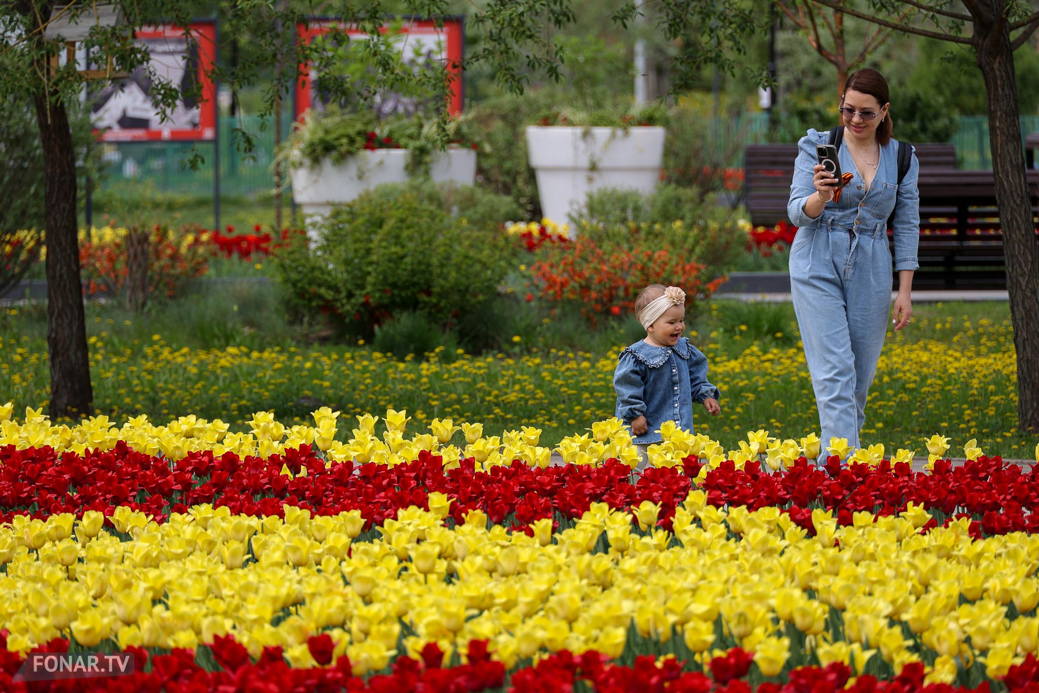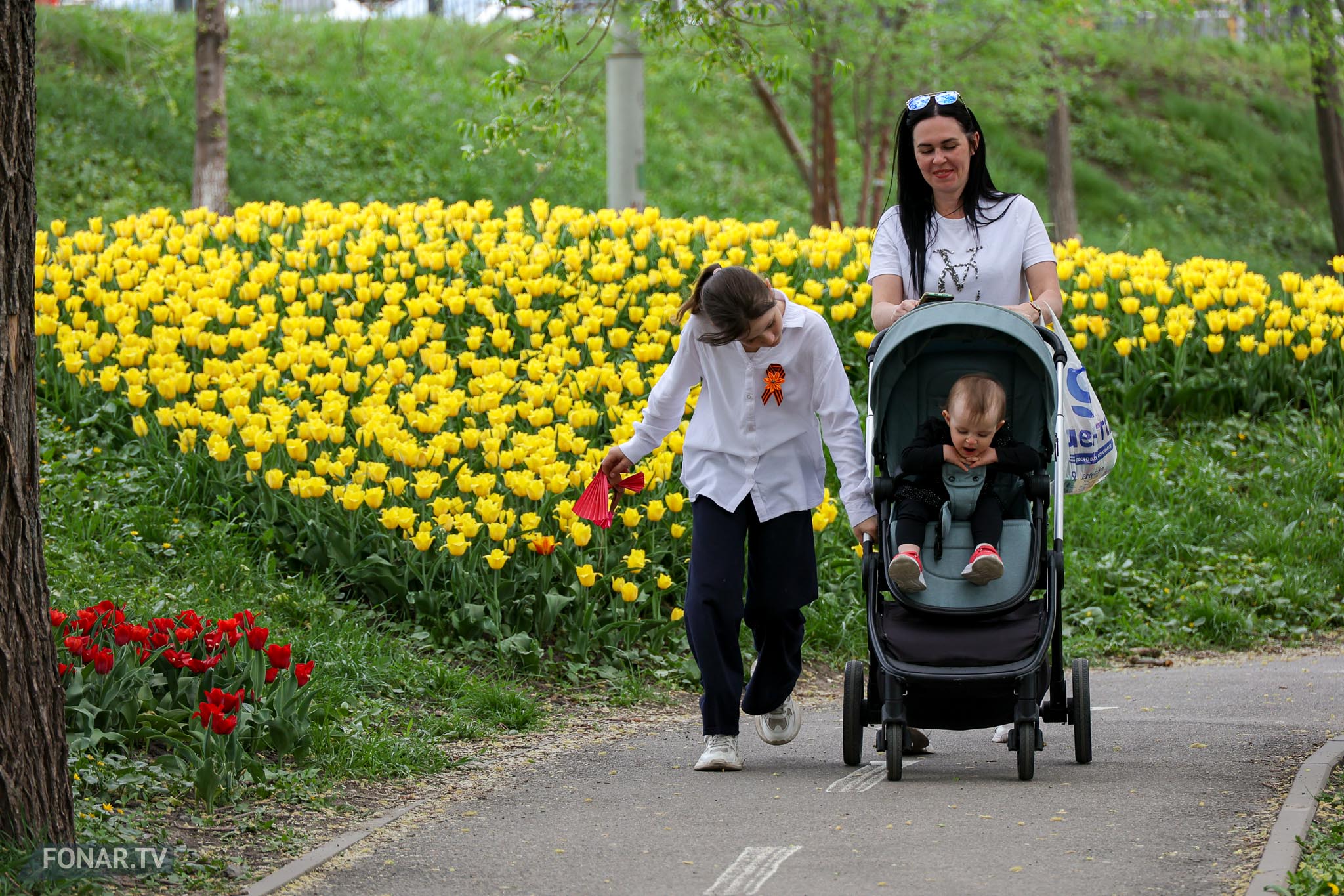 Люди, гуляя по паркам и набережной, смеются и фотографируются на фоне цветущих тюльпанных полей. Каждый шаг по цветочным морям наполняет душу теплом и светом, а звуки смеха и щебетания птиц создают классическую симфонию весны, несмотря на капризы погоды.