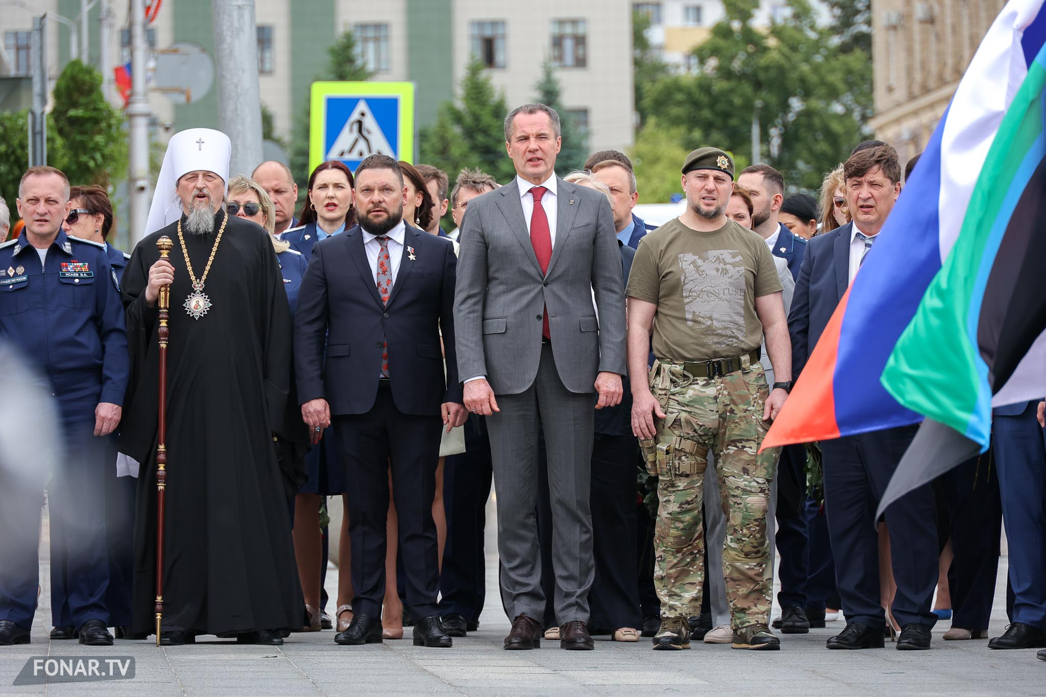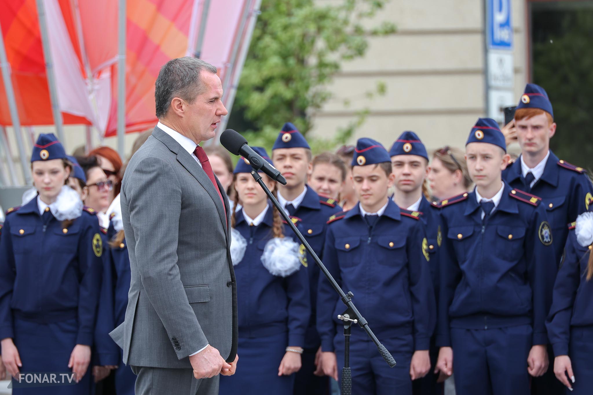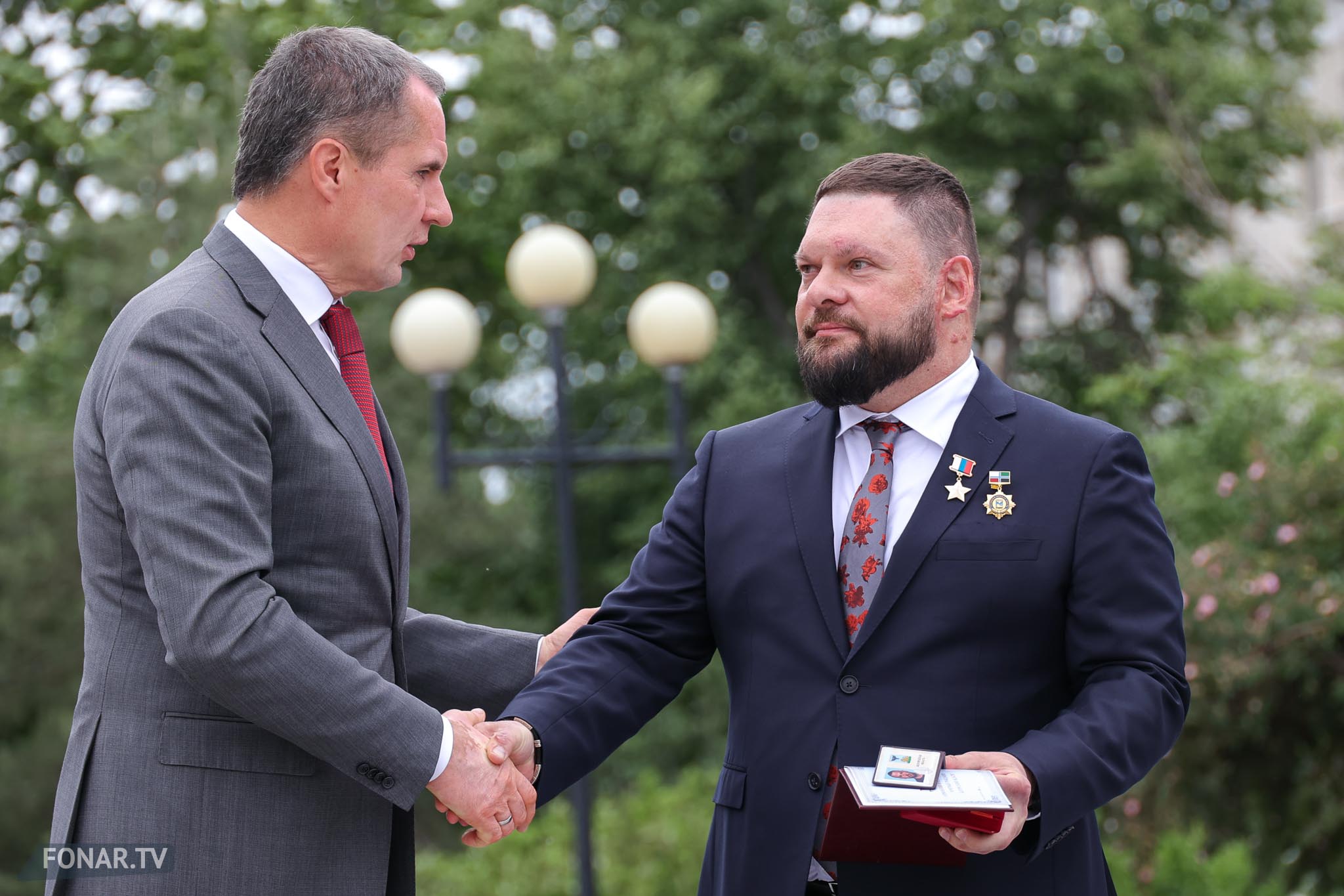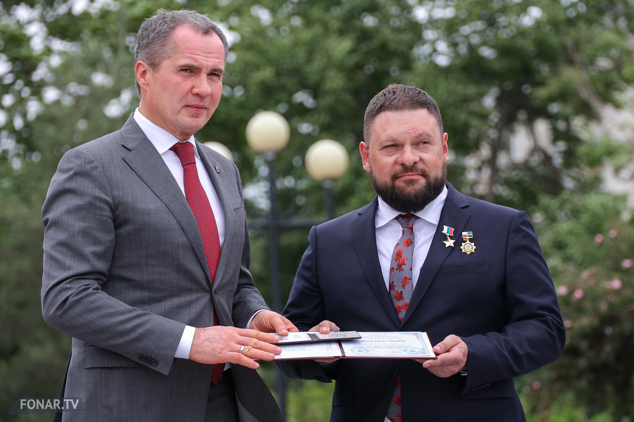 В среду, 28 мая, на Соборной площади Белгорода прошла церемония присвоения звания почётного гражданина области государственному военному корреспонденту Евгению Поддубному. Уроженец региона, он стал первым российским журналистом, удостоенным звания Героя России. После признания на федеральном уровне пришла очередь присвоить ему звание почётного гражданина на региональном уровне. Это сделал губернатор Белгородской области Вячеслав Гладков при участии председателя областной думы Юрия Клепикова, митрополита Белгородского и Старооскольского Иоанна, заместитель руководителя Федерального казначейства Эли Исаева, а также командира спецназа «Ахмат» Апти Алаудинова.