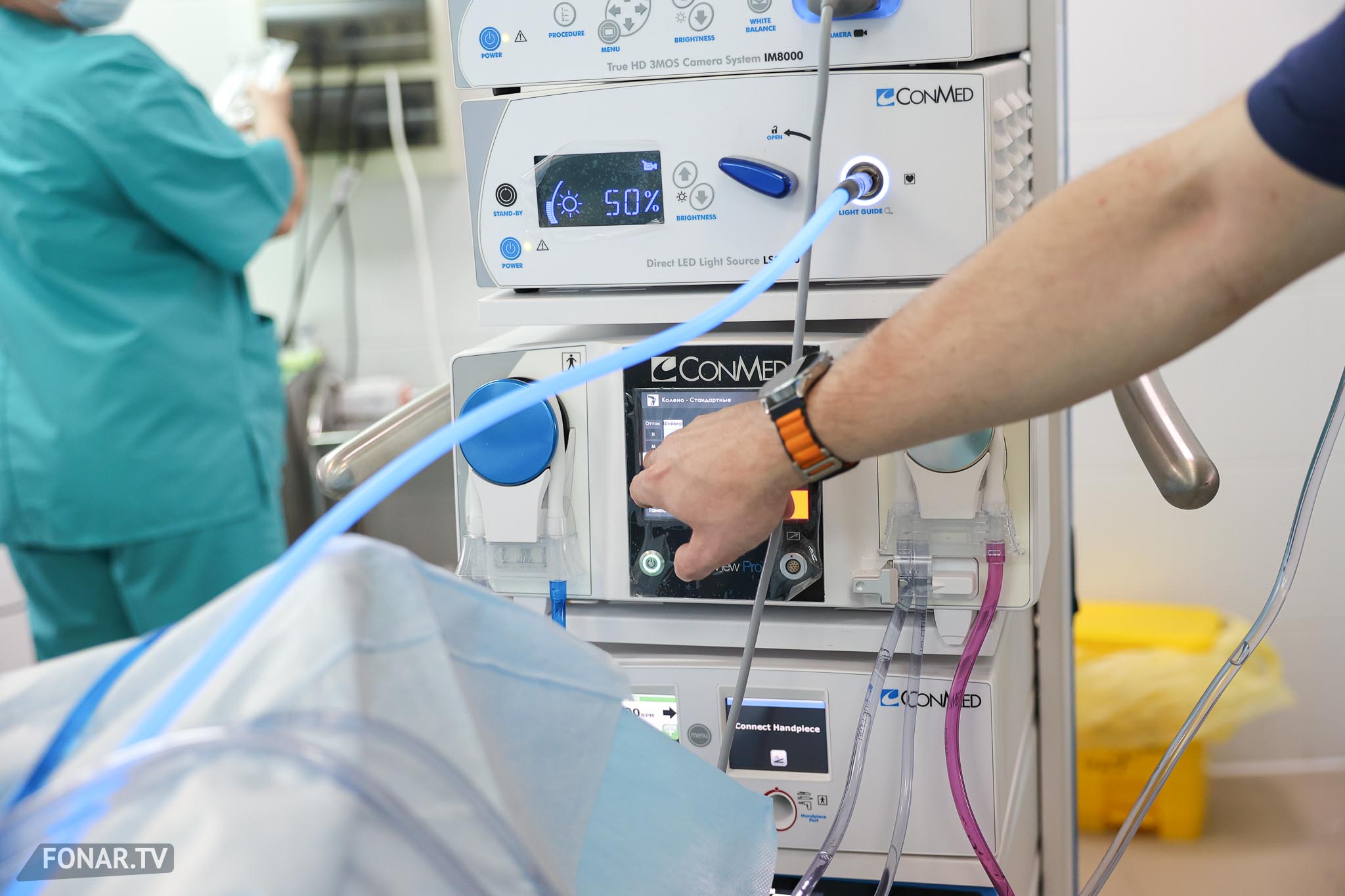 — У нас новая эндоскопическая стойка с видеосистемой, генератор холодной плазмы — он позволяет бережно работать с мягкими тканями, выполнять коагуляцию. Также есть специальный артроскопический шейвер для обработки мягкотканных структур, набор инструментов для артроскопии. Расходные материалы — одноразовые, используются на каждую операцию.